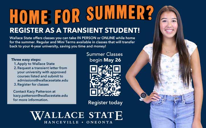 Whether you’re taking one class or a full course load, now is a great time to plan ahead. Review the Summer 2026 offerings, meet with a success advisor to map your Pathway and transfer goals, and explore the many resources available to help you succeed. Visit our website, use the Wallace State mobile app, or stop by Lion Central for in-person support.