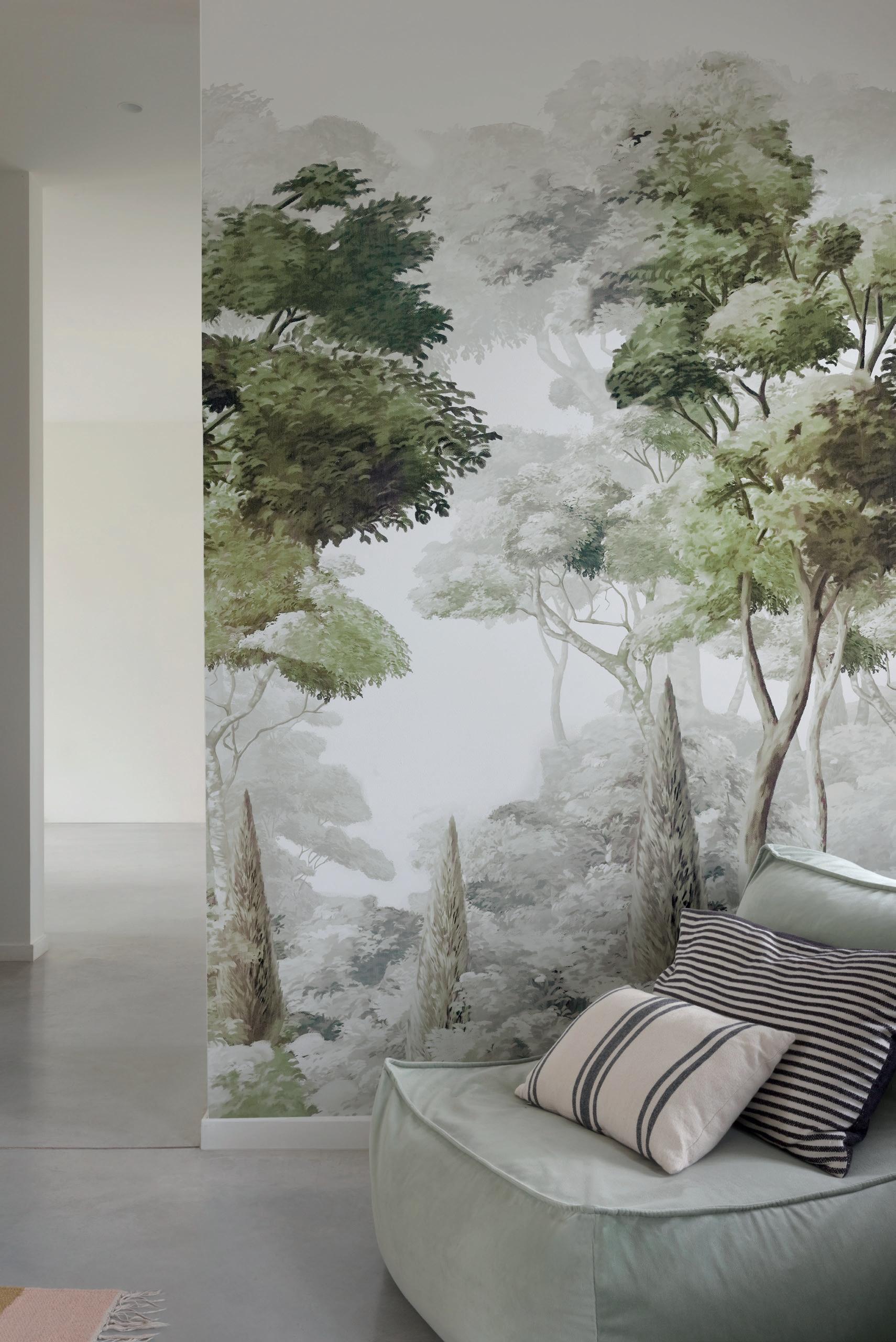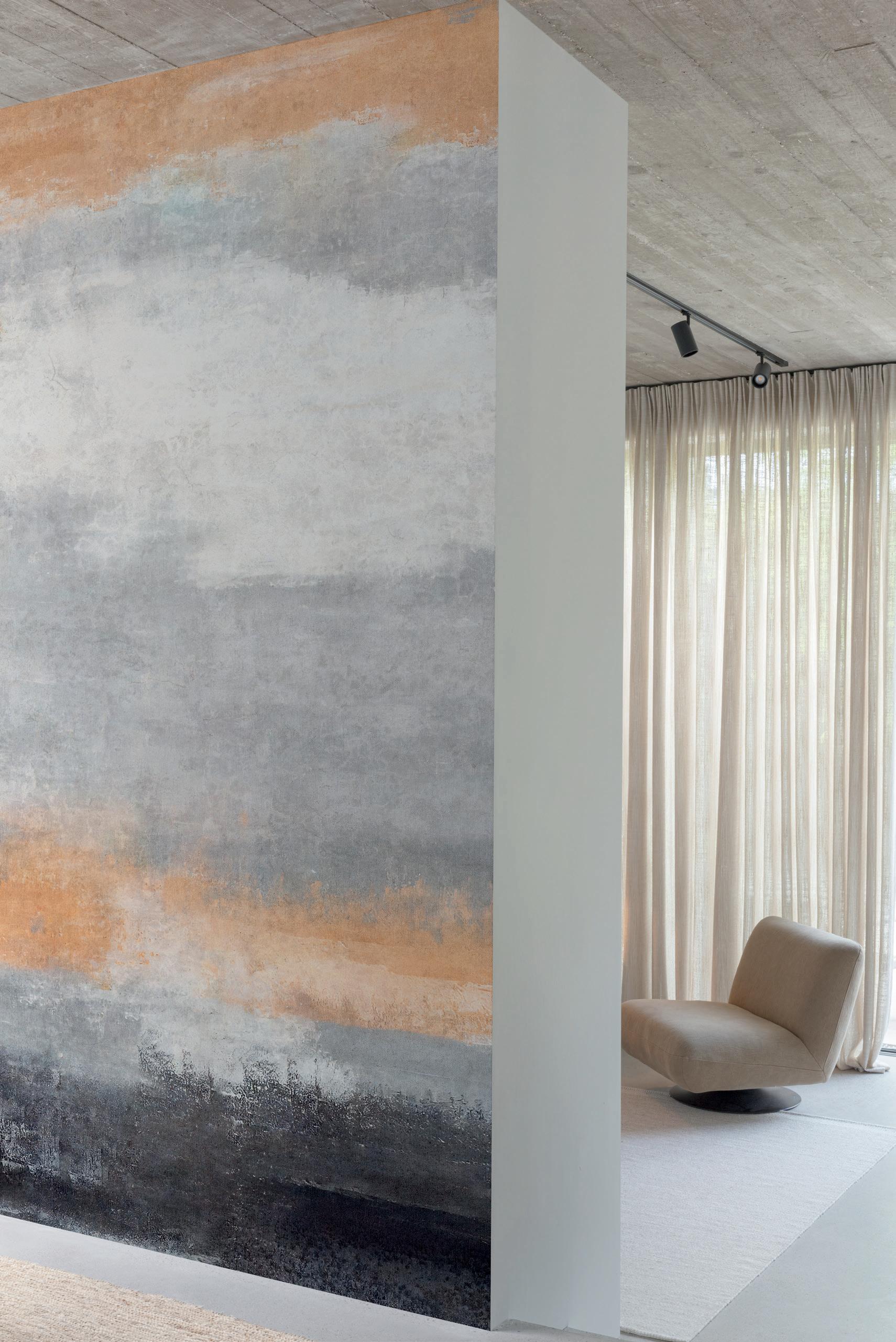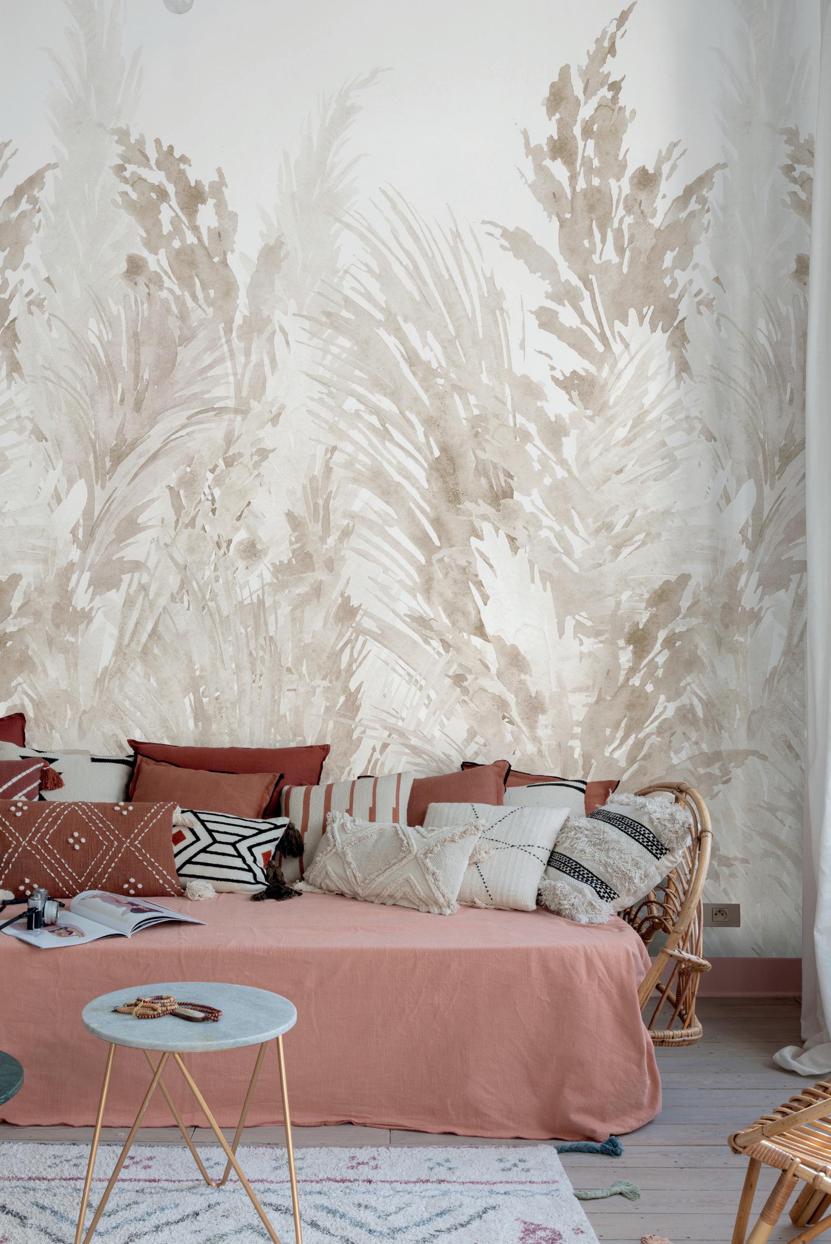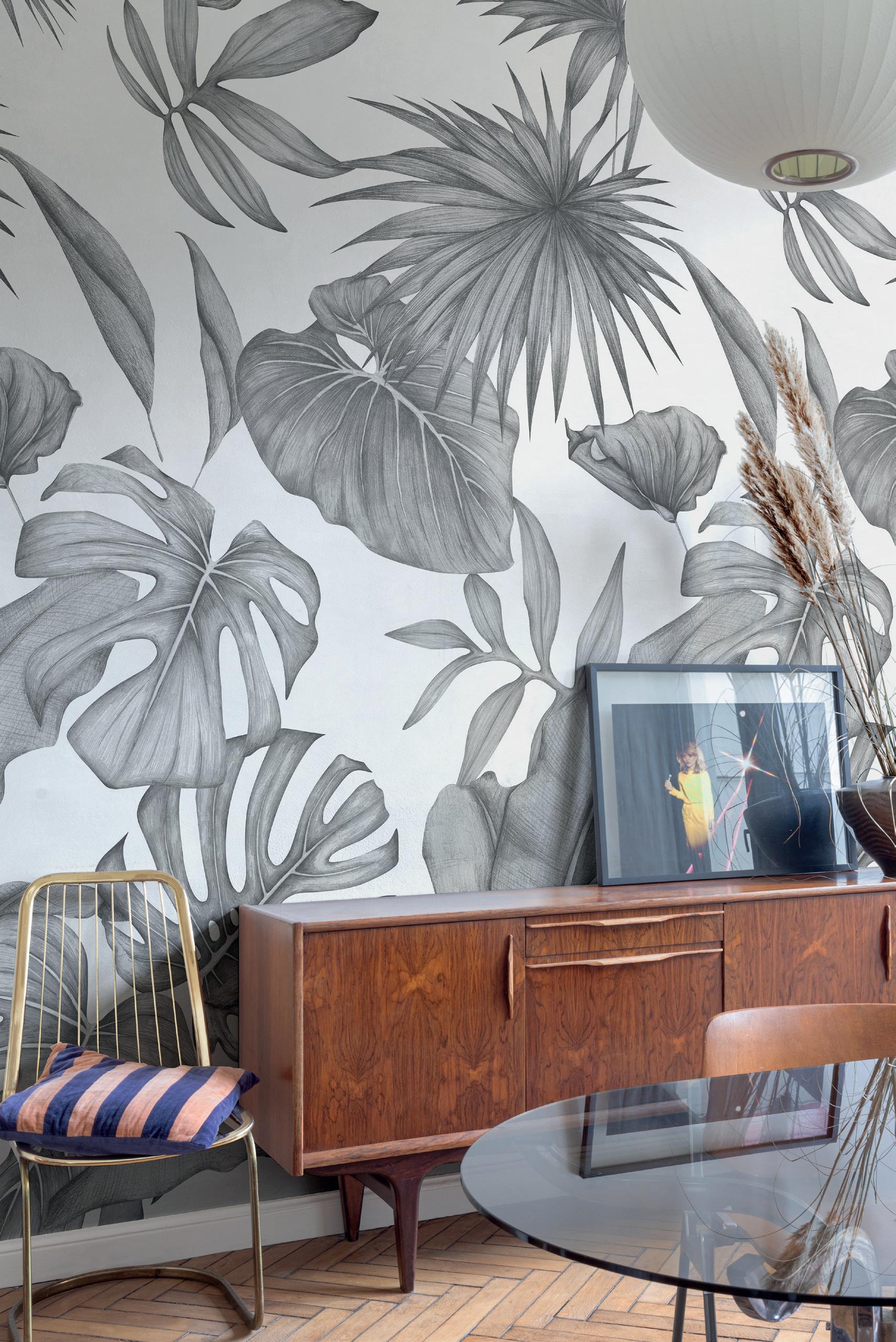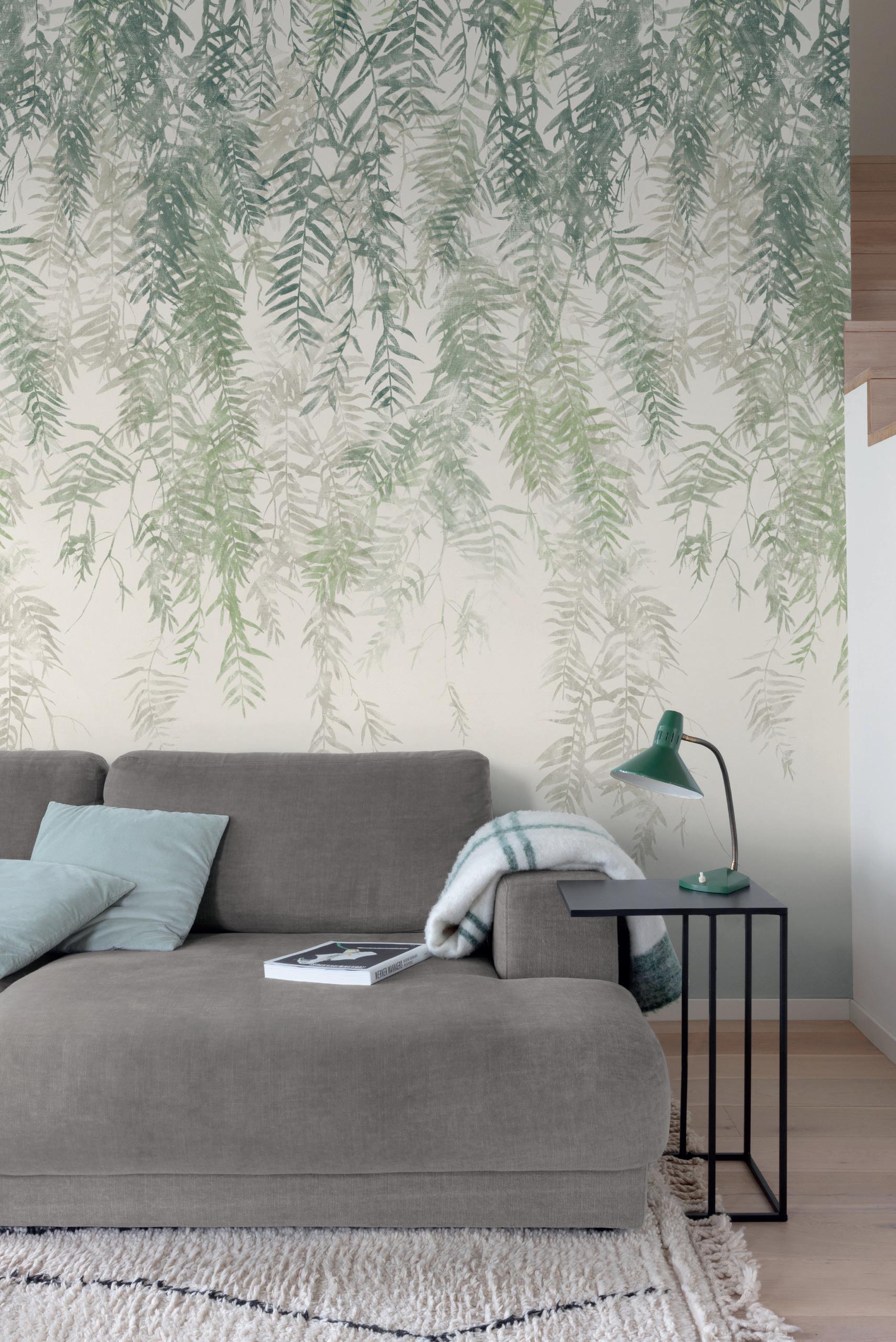 Plains are the ideal complement to feature murals. Textured wallpapers give more depth and an interesting contrast in a room.