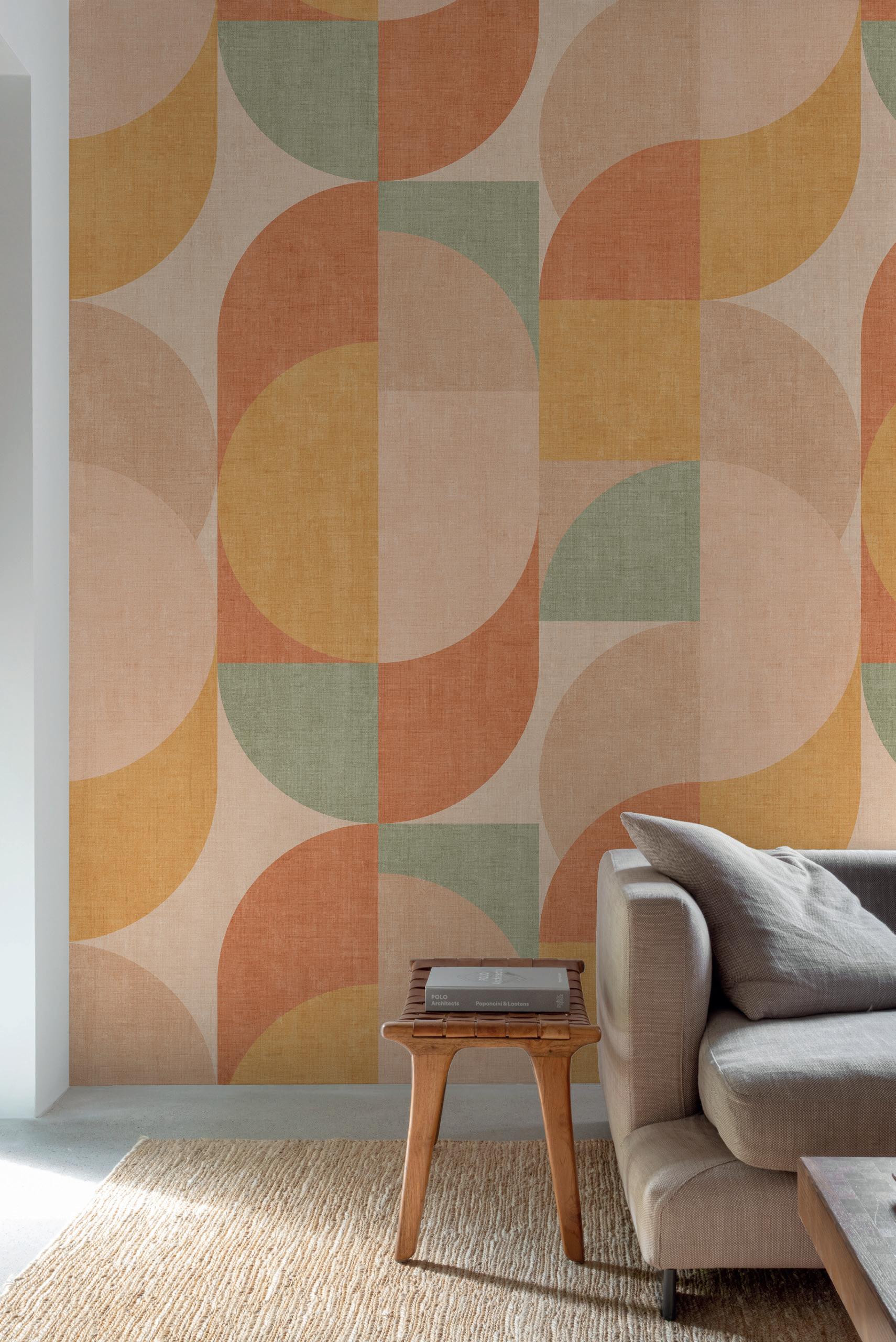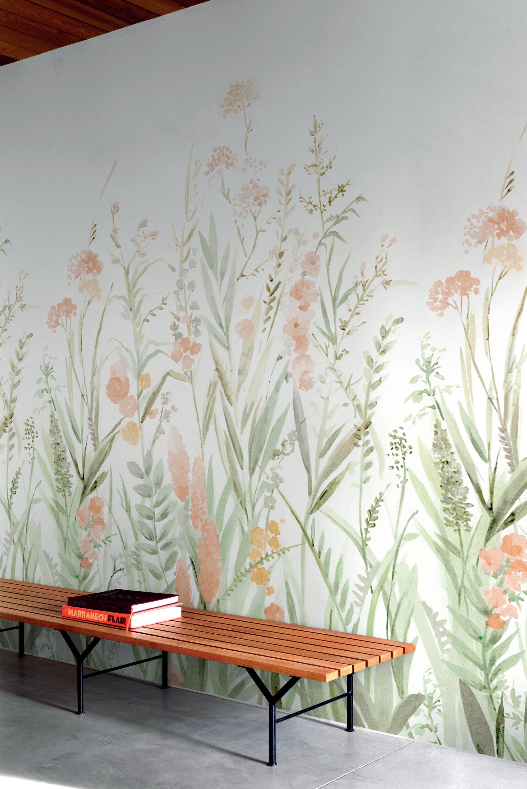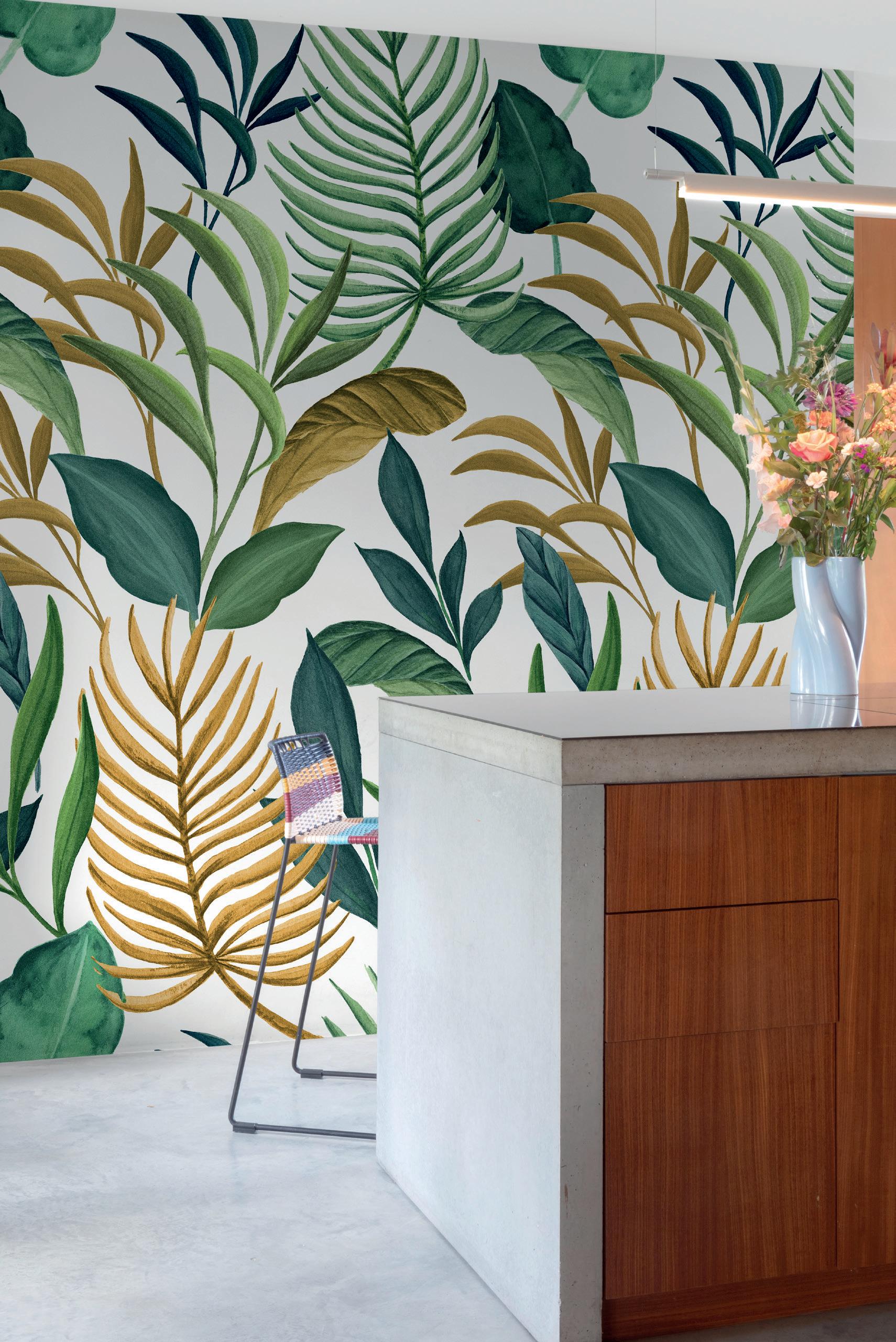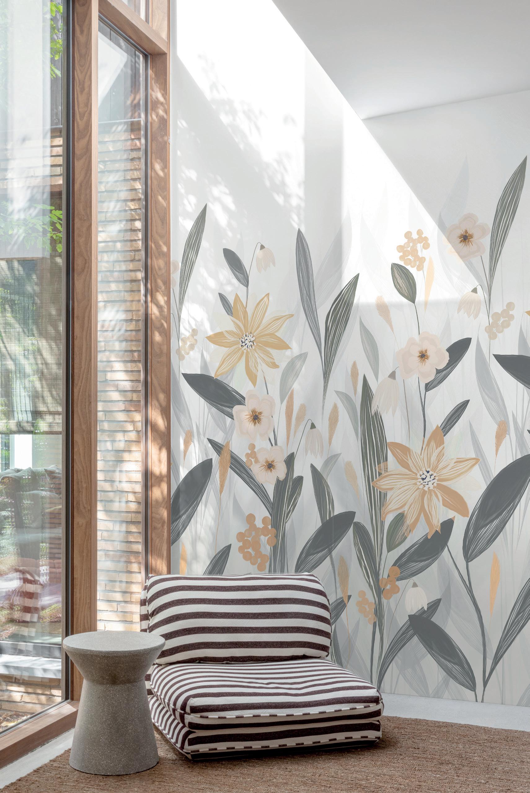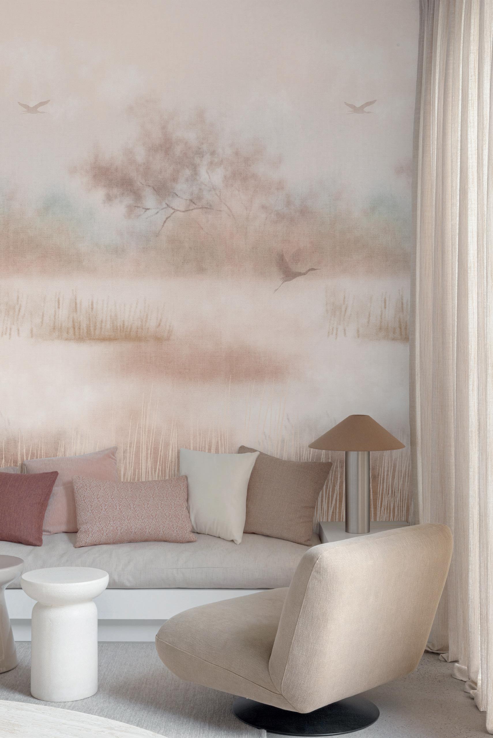 Plains are the ideal complement to feature murals. Textured wallpapers give more depth and an interesting contrast in a room.