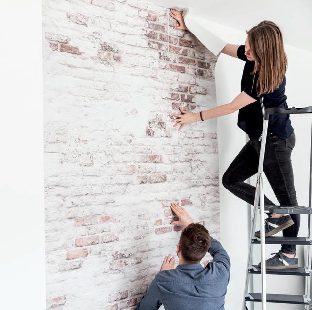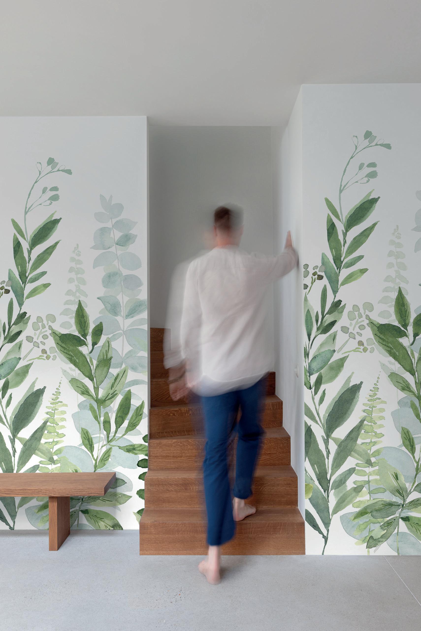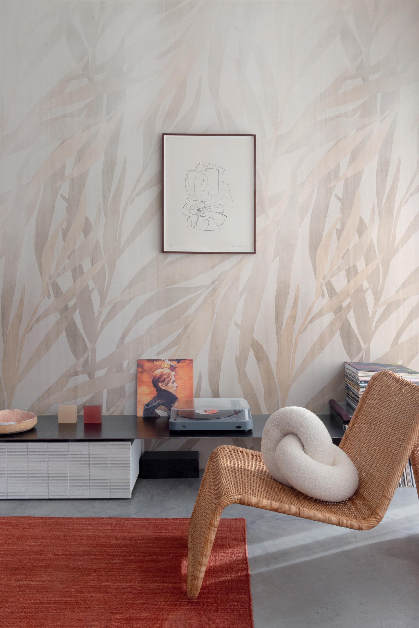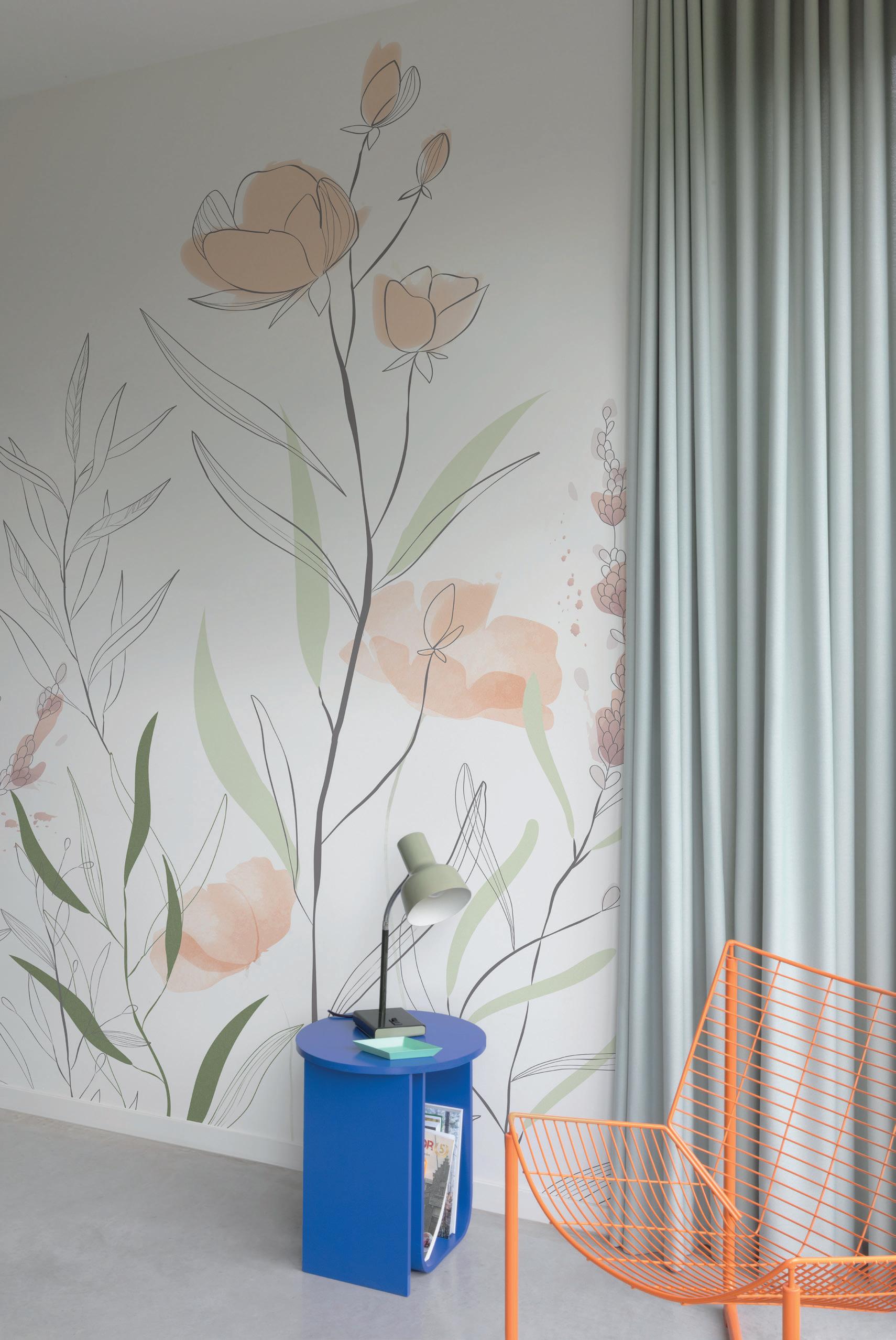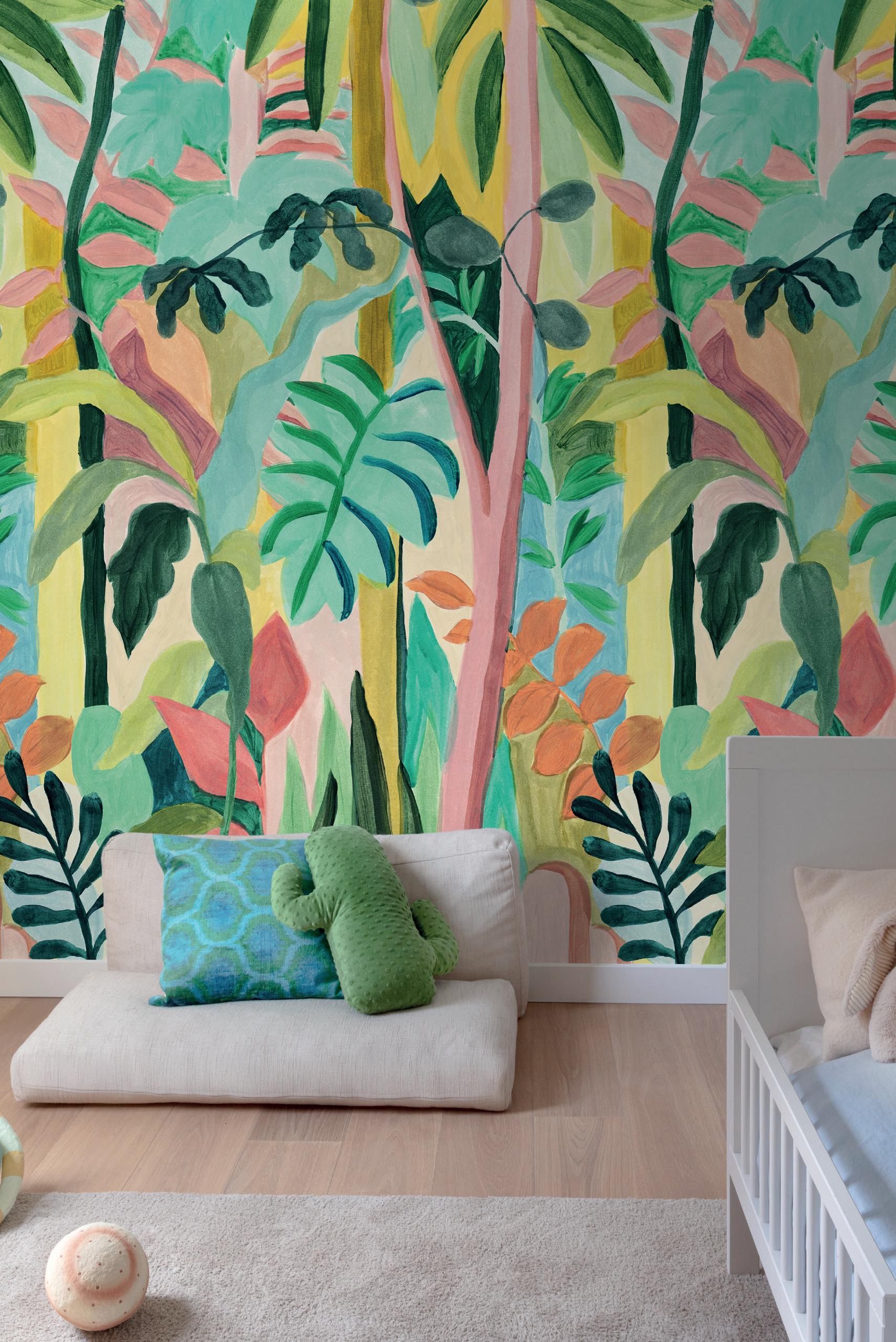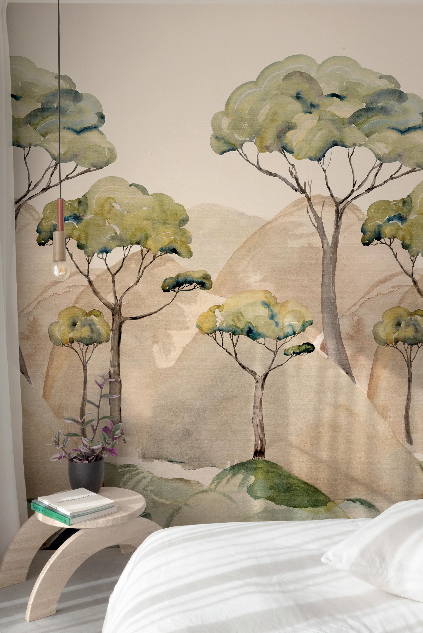 Plains are the ideal complement to feature murals. Textured wallpapers give more depth and an interesting contrast in a room.