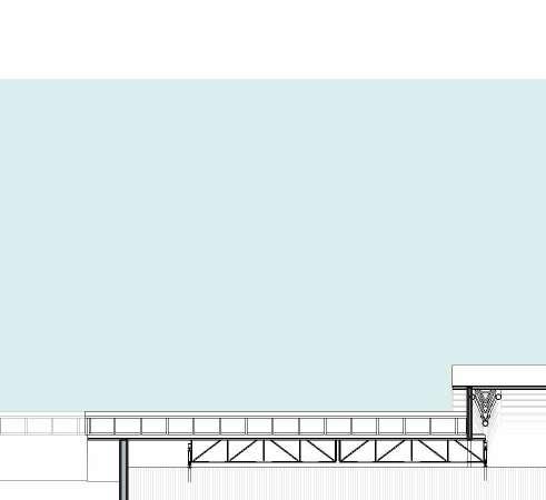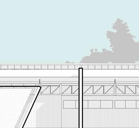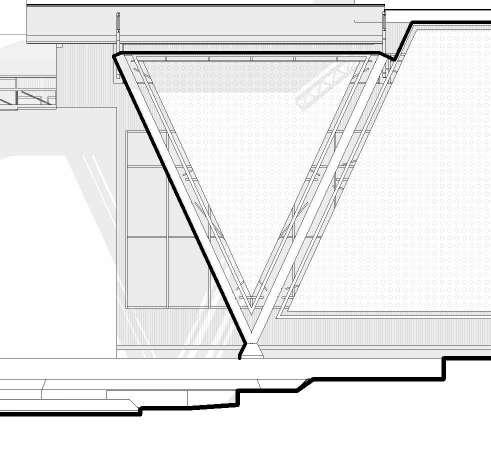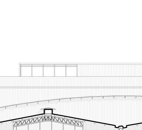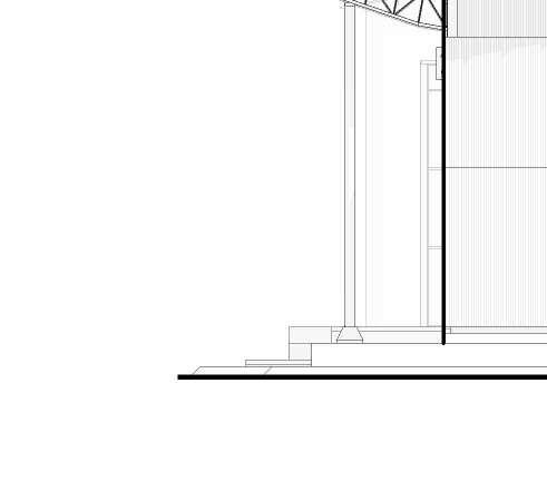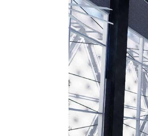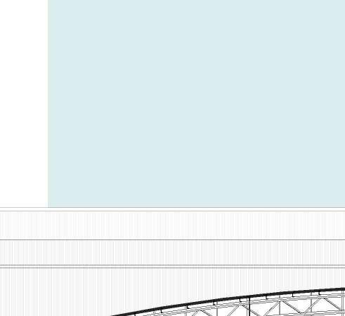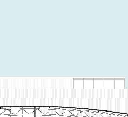 Viga curva estructural conformada por tres tubos circulares de acero de 160 mm de diámetro exterior, dispuestos en configuración triangular.