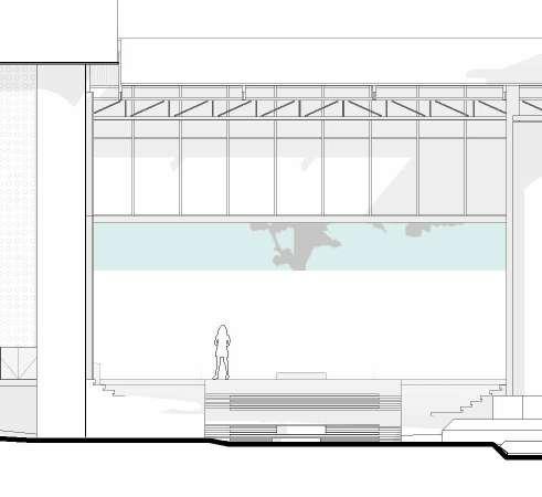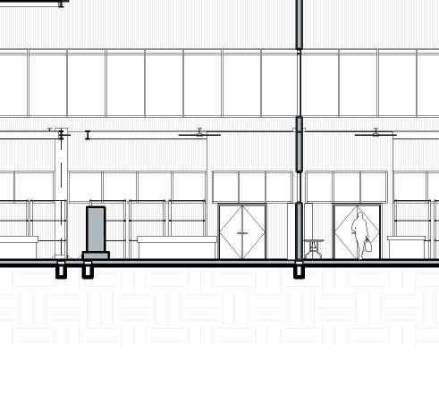 Ventana de vidrio traslúcido en tonalidad gris humo fijo con perfilería de aluminio, cerramiento de doble vidrio (DVH) 6 mm camara de aire 12 mm.
