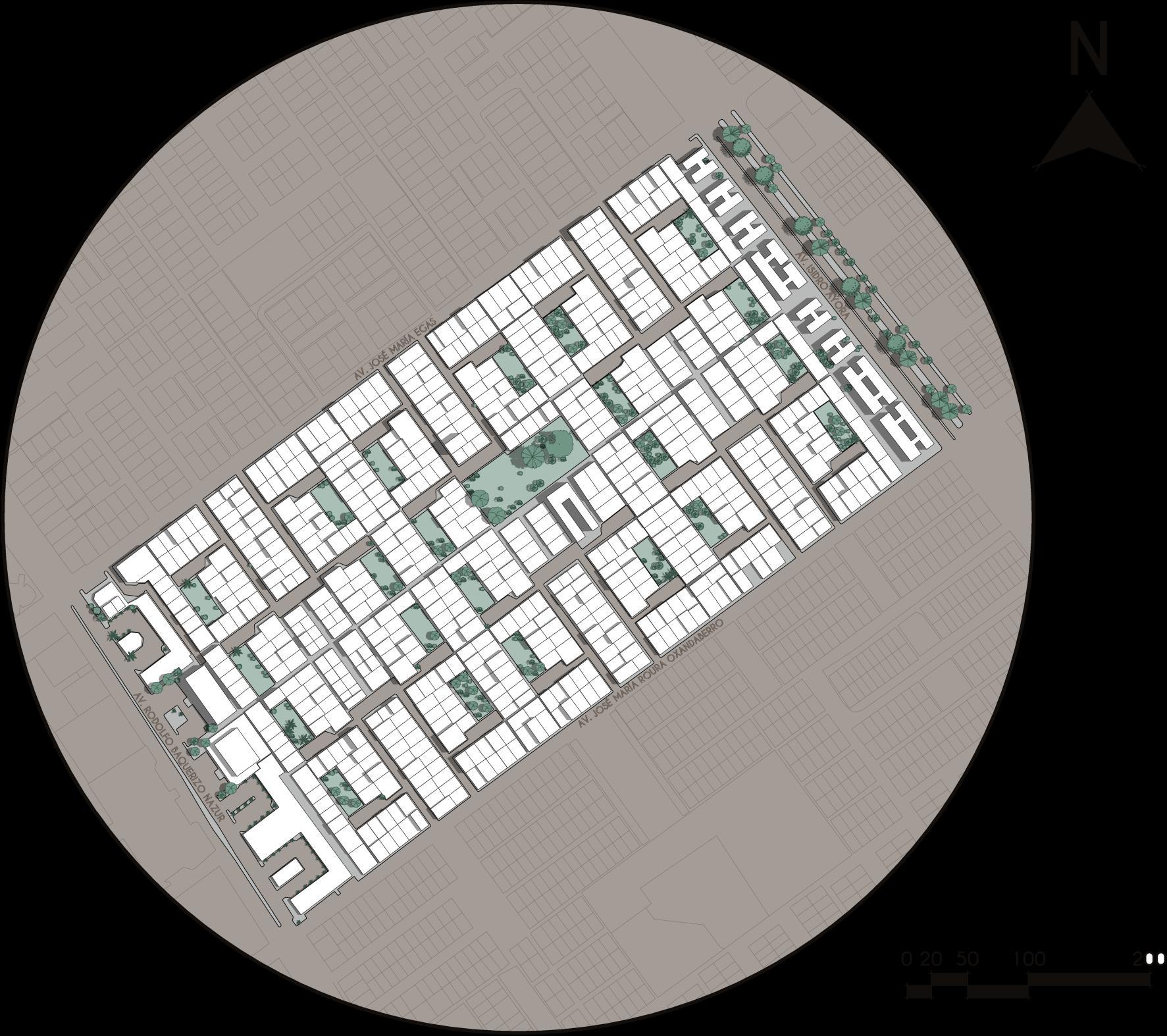 suroeste y la Av. José María Roura de suroeste a noreste.