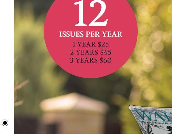 WALTER is available by paid subscriptions for $25 a year in the United States, as well as select rack and advertiser locations throughout the Triangle. Subscribe online at waltermagazine.com/subscribe