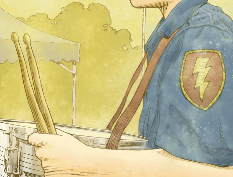 They dropped the swing back down and I got in and rode up and out. We didn’t march in formation back to the Quaker House because it was like a whole different day once we got her out. What happened was they got the rug out and we all started walking back to the Quaker House and just when we started, Jimbo walked over to me and didn’t say anything. He turned me around and put his hands under my armpits and lifted me up till I was on his shoulders and he walked me like that all the way to the Quaker House. I held onto his head under his chin. I felt like it was okay that he got my name wrong. I would ask Mama to tell him who I was. It was the end of my first day in the Funeral Militia.