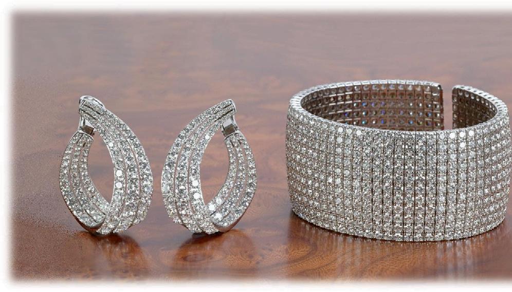 18 karat white gold, exhibiting over 51 carats of brilliance in the cuff bracelet and over 12 carats in the earrings.