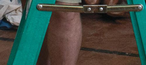 “Ha, ha,” she said, but she wasn’t laughing. “I don’t think so,” she said. “I’ve got some pain in my shoulder,” and she gets in the swing, and is just sitting there. “Mercy, Lord,” she says. The swing starts up and it gets her feet almost up to my knees and one of them S hooks