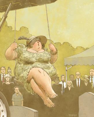 They tried again and lifted her up slow with everybody quiet, and you could hear the seat make a tiny cracking sound, and I heard some crows, until she was up there clear of the grave. Then Kenny turned it and swung her slow over the ground and she did a odd thing right then. I could see her top half over the edge of the grave from where I was — she started swinging like you do in a swing, and then she started singing, “Gonna take a sentimental journey. Sentimental journey home.”