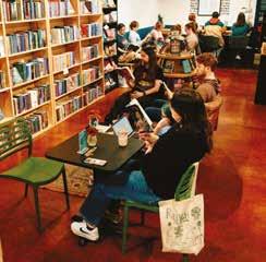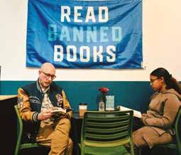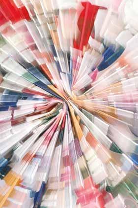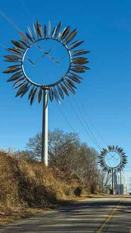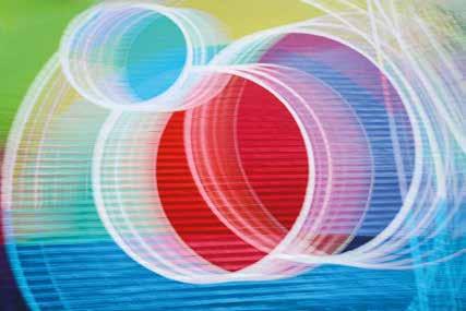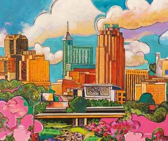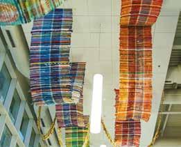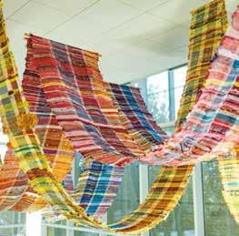 Swaths of color drape from the ceiling in the two-story, windowlined entrance to the Abbotts Creek Community Center in northeast Raleigh. Teals and turquoise, shades of yellow, mixes of red, orange, pink and everything in between — they invite guests to look up and pause. “The building was gorgeous, but it was exciting what a big change the color made,” says Winston-Salembased artist Kelsey Merreck Wagner, who created the installation, called Chromophobia. “The work shimmers and changes with the shift in the sunlight during the day and to overhead lighting at nighttime.”