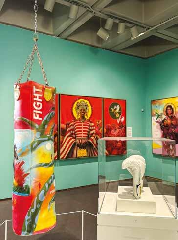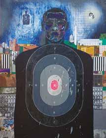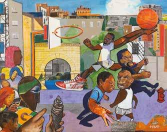 on his social media accounts keeps his work visible and recognizable. On the McRay Studios website, you’ll find a streaming carousel of photos of collectors holding his paintings. “When I went full-time as an artist, my mother said to me, you need to take pictures with people who bought your art and put them on the wall,” says McRay. Instead he opted for a more portable visual archive that he calls his “Collectors Gallery.” “I had this big book in my studio art space on the tabletop and people would flip through it and say, that’s my pastor!” he says.