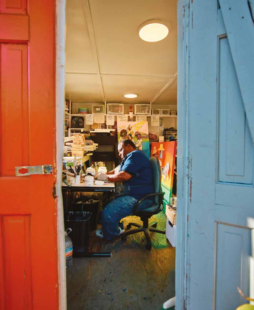 These classes and open studios have left lasting impressions on him. “I love it when young artists call me Unc or OG, or tell me, When I was in elementary school, middle school, high school, I met you and I thought I could become an artist because I saw you do it,” he says. “I love to offer that encouragement to others.”