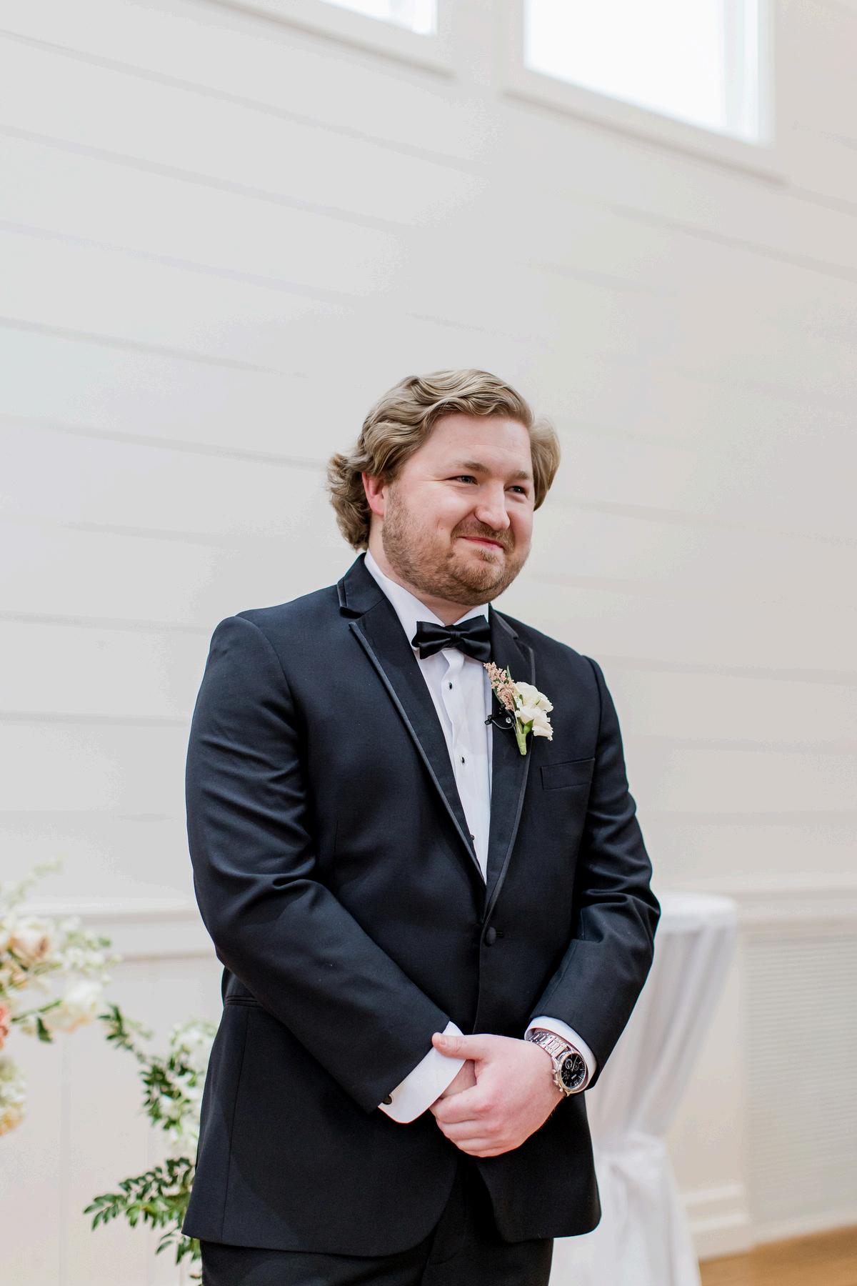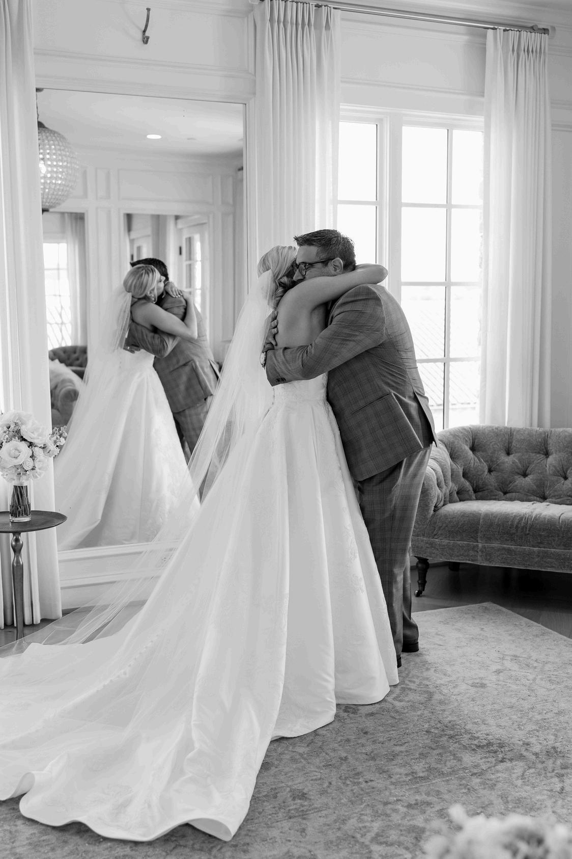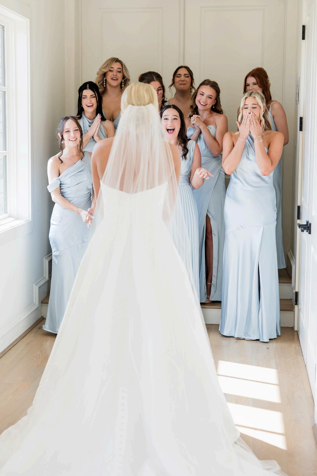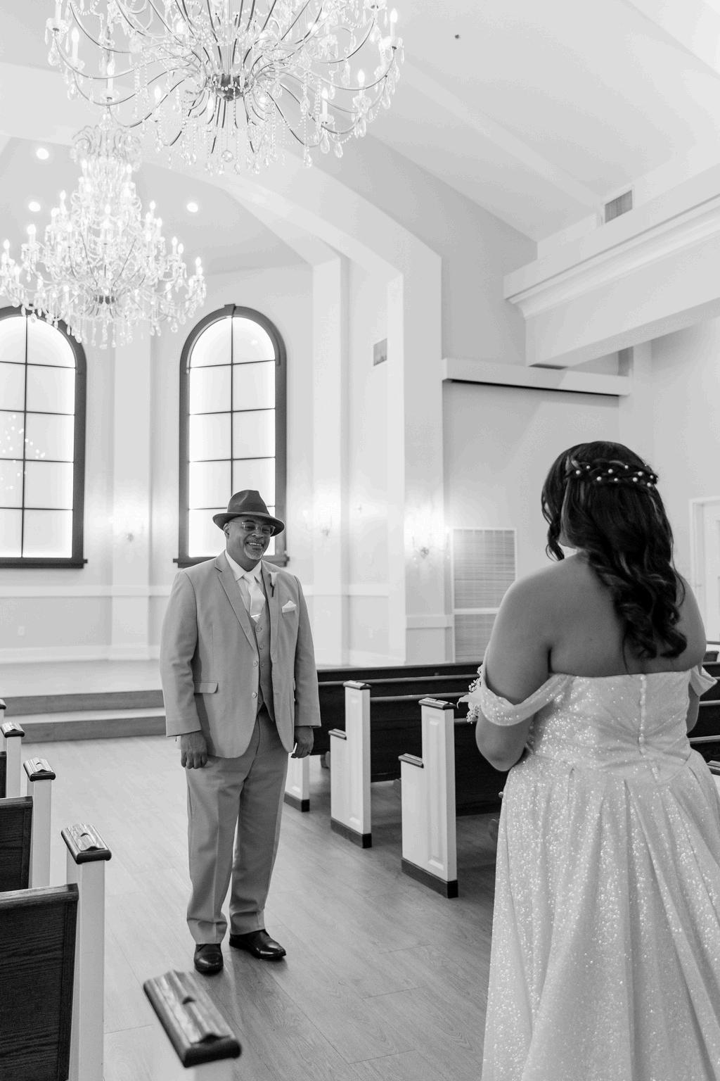 “First Looks! Whether it's the groom ' s reaction to his bride walking down the aisle the bridesmaids seeing her in her dress for the first time or the bride's first look with her dad! Those are sweet moments to capture ”
