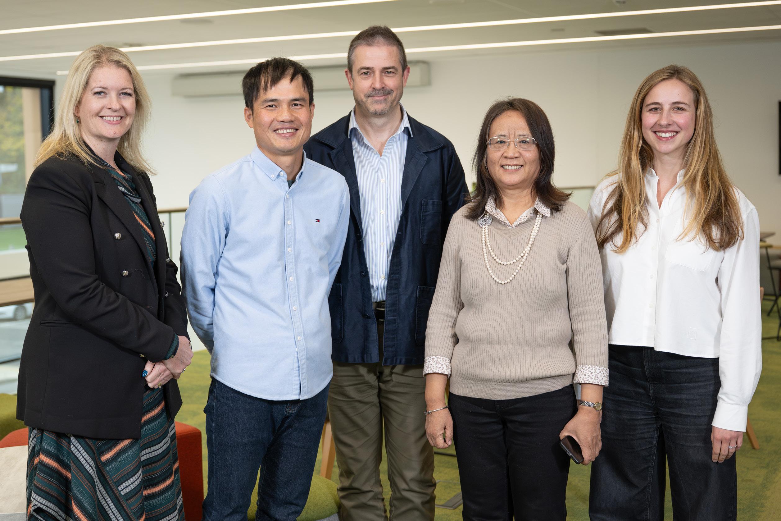 (from left to right) Emma Calverley, Knowledge Exchange Director, University of Hull; Dr Jing Li, Senior Research Fellow, University of Hull; Nick Simmons, CEO, Dew Point Systems Ltd; Dr Xiaoli Ma, Senior Research Fellow, University of Hull; Isobel Dodds, Venture Analyst, Cambridge Future Tech.