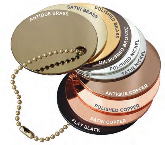 Metallic Trim Accents stocked in Brushed Aluminum (BA), Chrome (CR), Flat Black (WR), Polished Brass (PB), Satin Brass (SB), Satin Stainless (ST), & Warm Bronze (WB). All components pictured in flat black.
