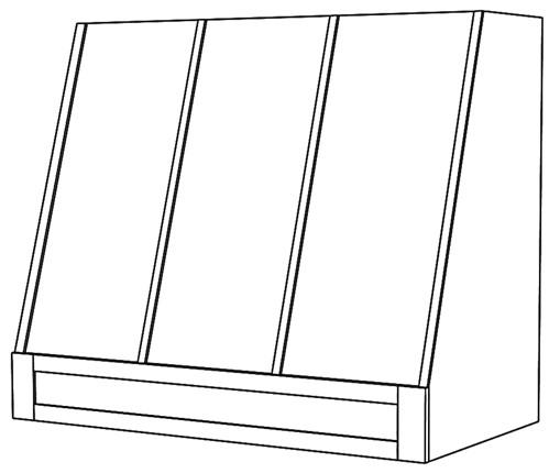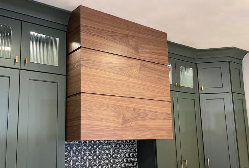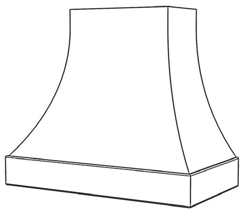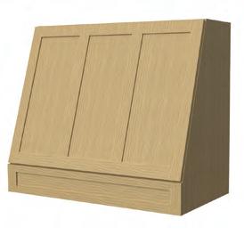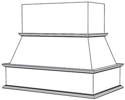 A 6” high hardwood wrap can be applied along the bottom of an In-Series hood to create the visual appearance of a separate base section. The wrap is shipped loose, and can be trimmed in-field to desired depth so sides remain flush for cabinet installatio n. This wrap can be applied in a different species than the hood to create a two-tone design.