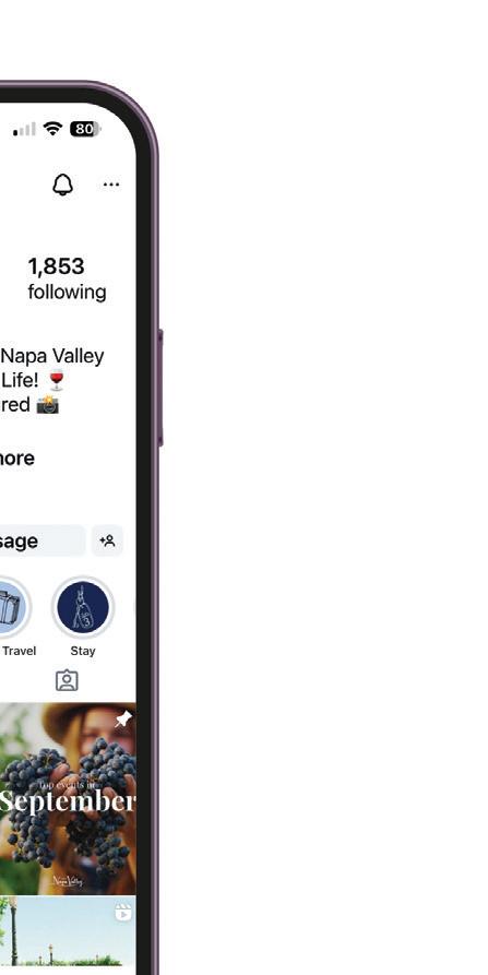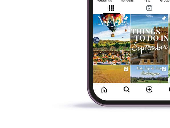 Whether you’re savoring locally grown produce and wine pairings, exploring our dynamic arts and culture scene, browsing our boutiques and galleries, or enjoying adventures that bring you closer to nature, Napa Valley o ers something for every traveler. You’ll find exceptional hospitality, unforgettable experiences, and a shared dedication to preserving what makes this place so special.