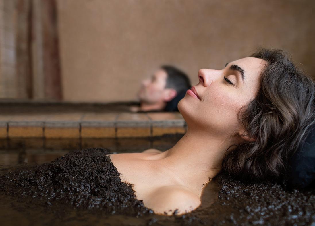 There are luxurious spa treatments, and then there are full-body mud treatments for two followed by your own private geothermal pool experience while enjoying a sparkling reserve rosé and chocolate art by candlelight.