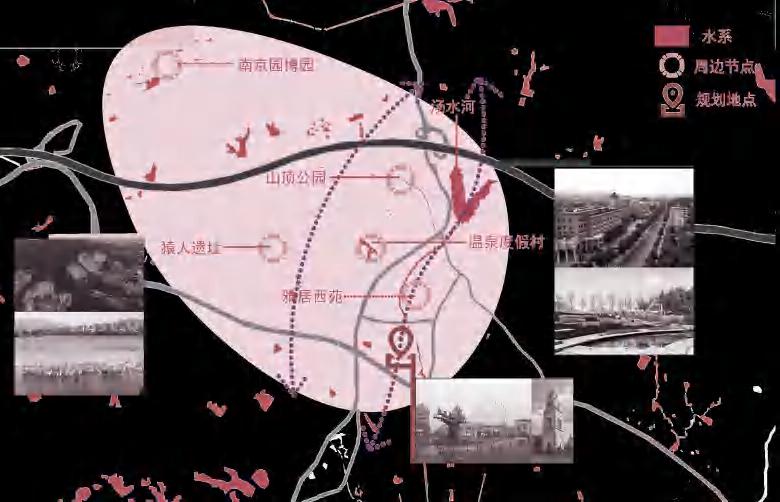 01 前期历史调研 得到规划地块周边历史要素——猿人化 石遗迹、废弃水泥厂、温泉、矿坑。