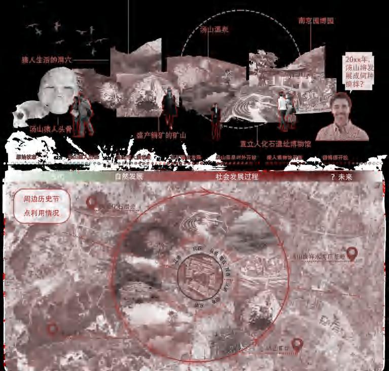 Based on the theory of time sequence and combined with the unique history and geographical environment of Nanjing Tangshan, the design creates a central area that can visit the past and trace the present to the future.