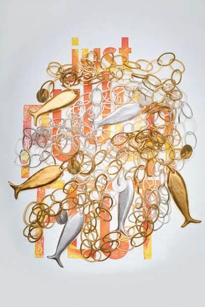 How’s this for dazzle – mirror, links, iridescent lampwork glass and foils in one fabulous piece, 50x50cm, framed, and a certain winner. € 400. hello@andrea-b-designs andrea-b-designs.com