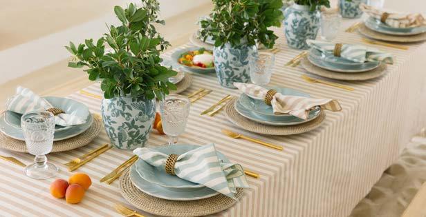 Portuguese brand Torres Novas debuts its first set of table linens. 100% cotton, in soft stripes of pink, green, blue or beige with white, there are tablecloths in three sizes, runners, napkins and cocktail napkins. And, a great touch... they can be personalised with a name or initials. torresnovas1845.com On the side. A