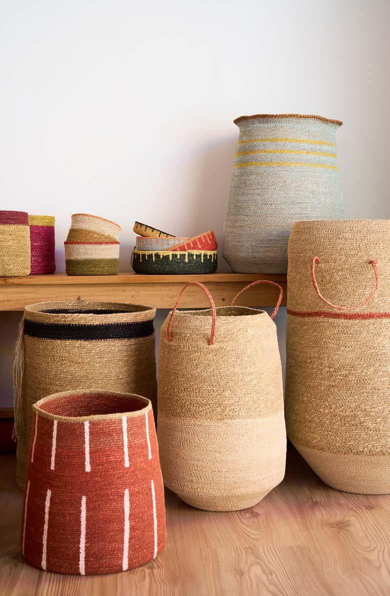 Have-to-haves. Colourful seagrass baskets in various designs and sizes, from Martina in Loulé, at Rua José Fernandes Guerreiro 39. €12–€135.