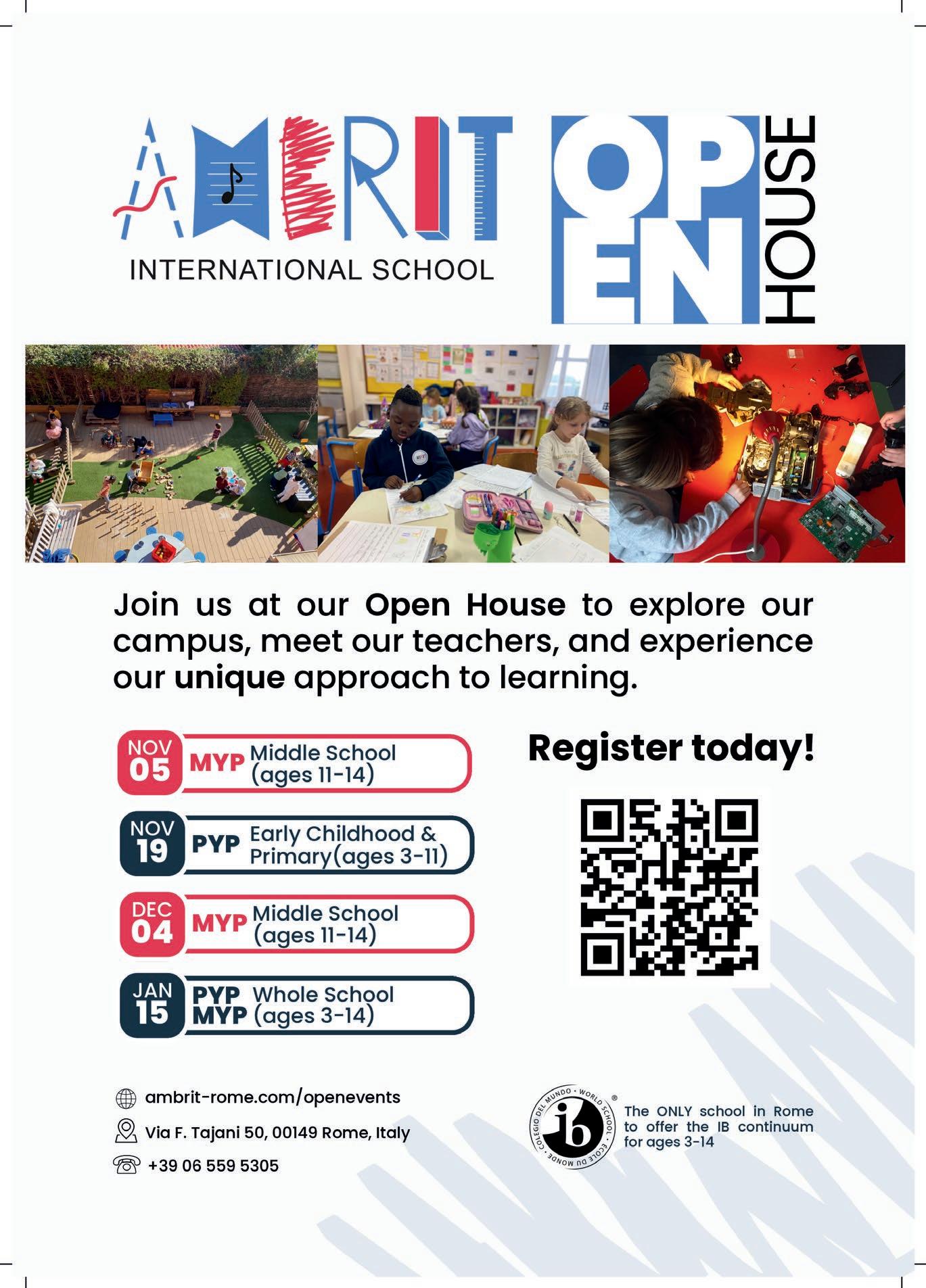 World-class education that nur tures curiosity and critical thinking A vibrant green campus set in Rome’s Monte Mario Natural Reser ve A truly international community where ever y child thrives