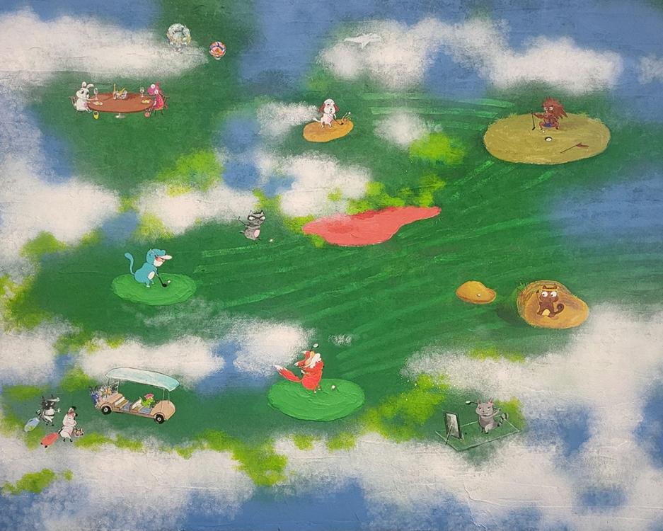 Myartisticjourneybeganonthegolfcourse.Atfirst,itwassimplyaplaceof rest awidefieldthateasedmyfrustrationsandgavemeroomtobreathe. Winningorlosingwasneverthepoint.Instead,theexpressionsIobserved andthescenesIexperiencedbecamesourcesofinspiration.Fromthere,the foxanditscompanionsbegantoappearinmypaintings,graduallygrowing innumberastheseriesevolved.