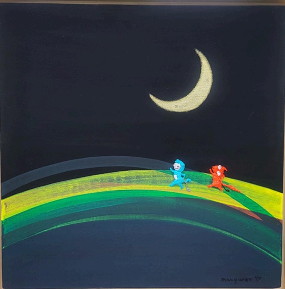 “Themoon,thoughdistant,isaconstantsourceofcomfort.Thesmallbeingsupon thehillarefragmentsofhopewithinourhearts.Intheirrunningtogether,eachin theirowncolors,Iwishedtoconveyonesimpletruth thatwearenevertruly alone”