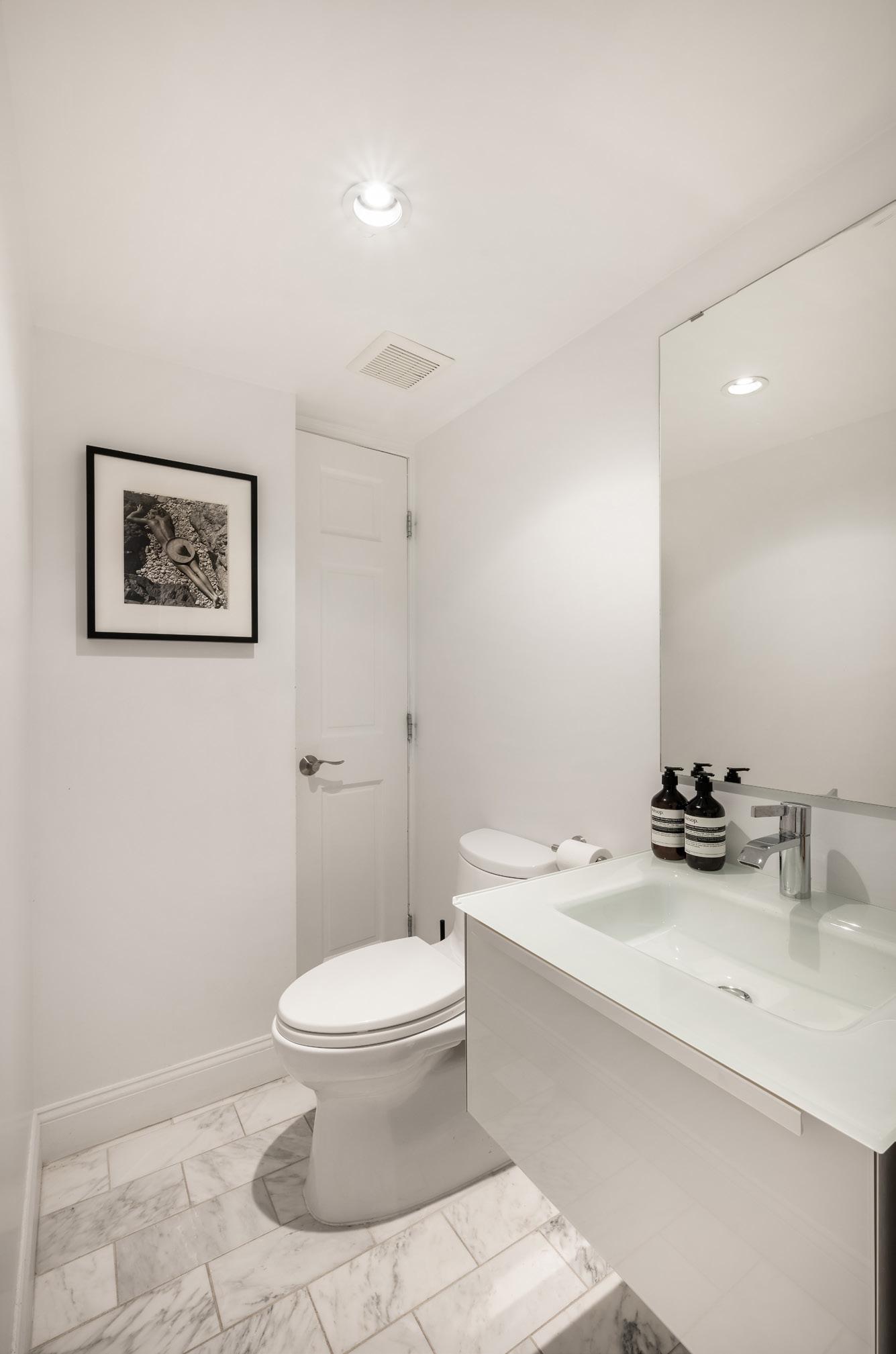 On the third floor, prepare to be enchanted as you enter the expansive primary bedroom. The tastefully designed en-suite bathroom steals the spotlight, boasting a lavish renovation that elevates the concept of luxury living. Adorned with double sinks, this bathroom not only offers an exquisite aesthetic but also enhances functionality, allowing for a seamless morning routine or a serene evening wind-down. Bathed in natural light, courtesy of its very own skylight, the bathroom exudes a tranquil and serene ambiance, creating a spa-like atmosphere that beckons you to relax and rejuvenate.