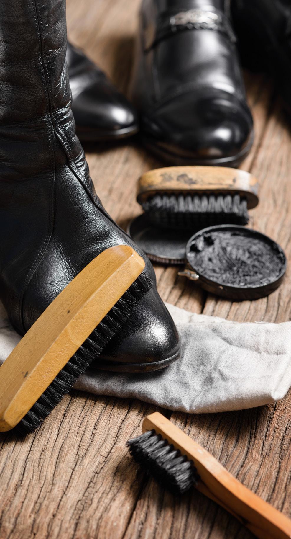 • Polera skorna med en trasa efter att de smorts in och låt balsamet eller krämen torka in. Låt skorna torka med skoblock i för att behålla formen.