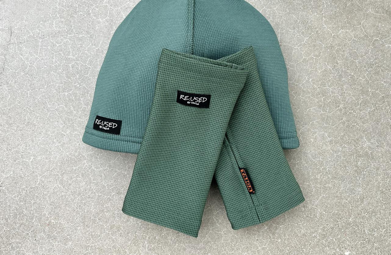 Tillsammans med Beskow von Post har Taiga tagit fram och valt ut de material som använts till en mössa och handledsvärmare tillverkade av ambulanskläderna.