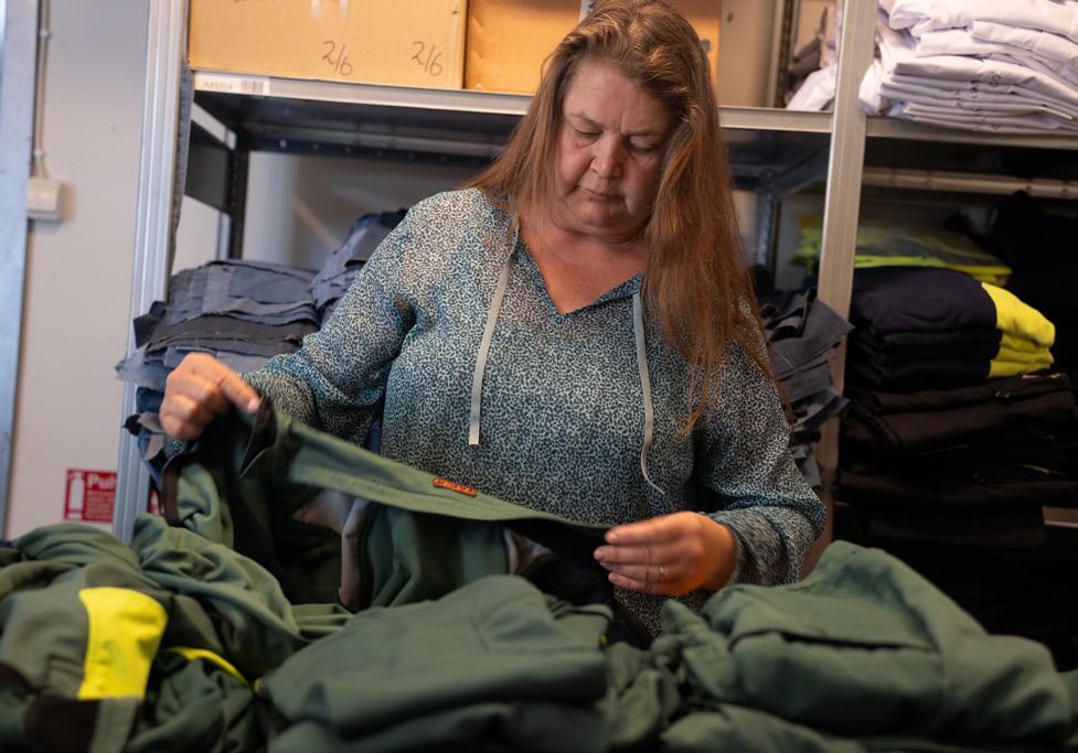 Arbetskläder är ofta svåra att återbruka, men på Tranemo Workwear är ambitionen att skapa nya plagg från egna brukade kläder satt > s. 16