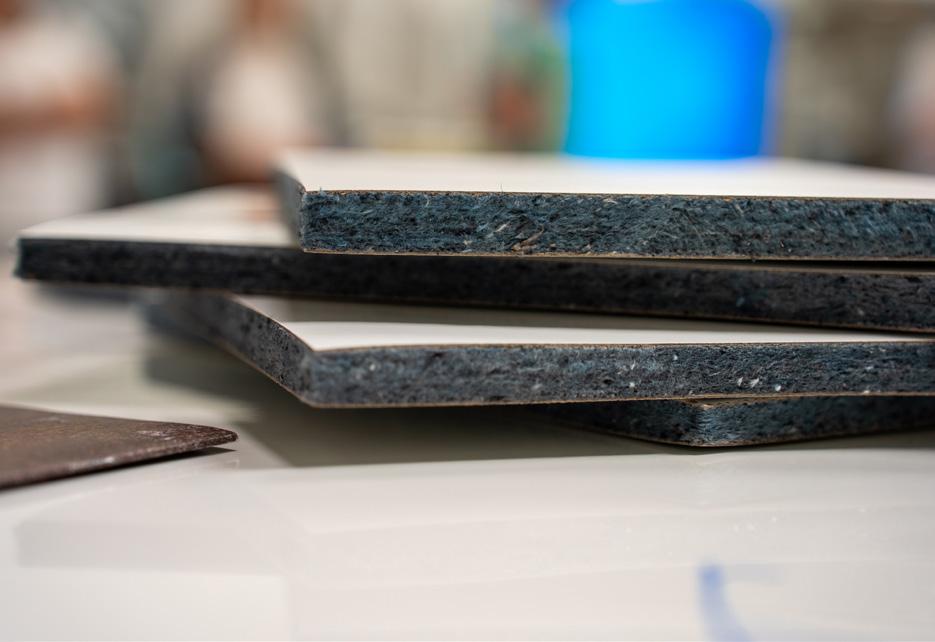Det var bordsskivan som var det största fokuset under TexChain3 där FORM2 valde att testa att formpressa utsorterade jeans. Som med mycket när det kommer till cirkularitet gav de sig in på okända marker med de här försöken och de tidigaste proverna blev allt för mjuka med risk att gå i tu med för hög belastning.