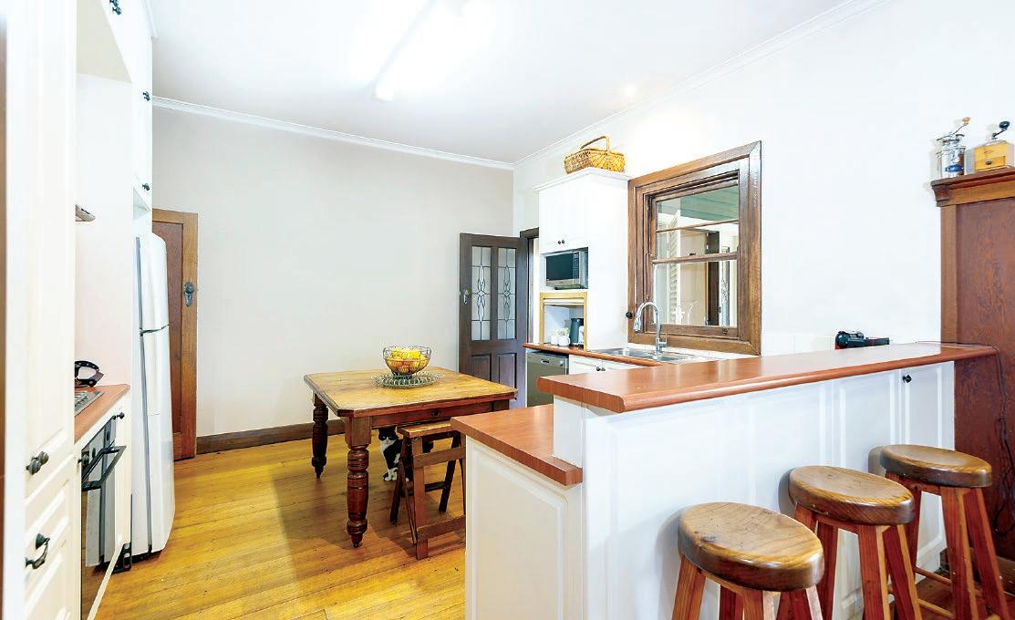 Reclaimed bricks line the path to the front door. Inside, the interior has been refreshed with repainting and new timber laminate flooring in the entry hall and living areas.