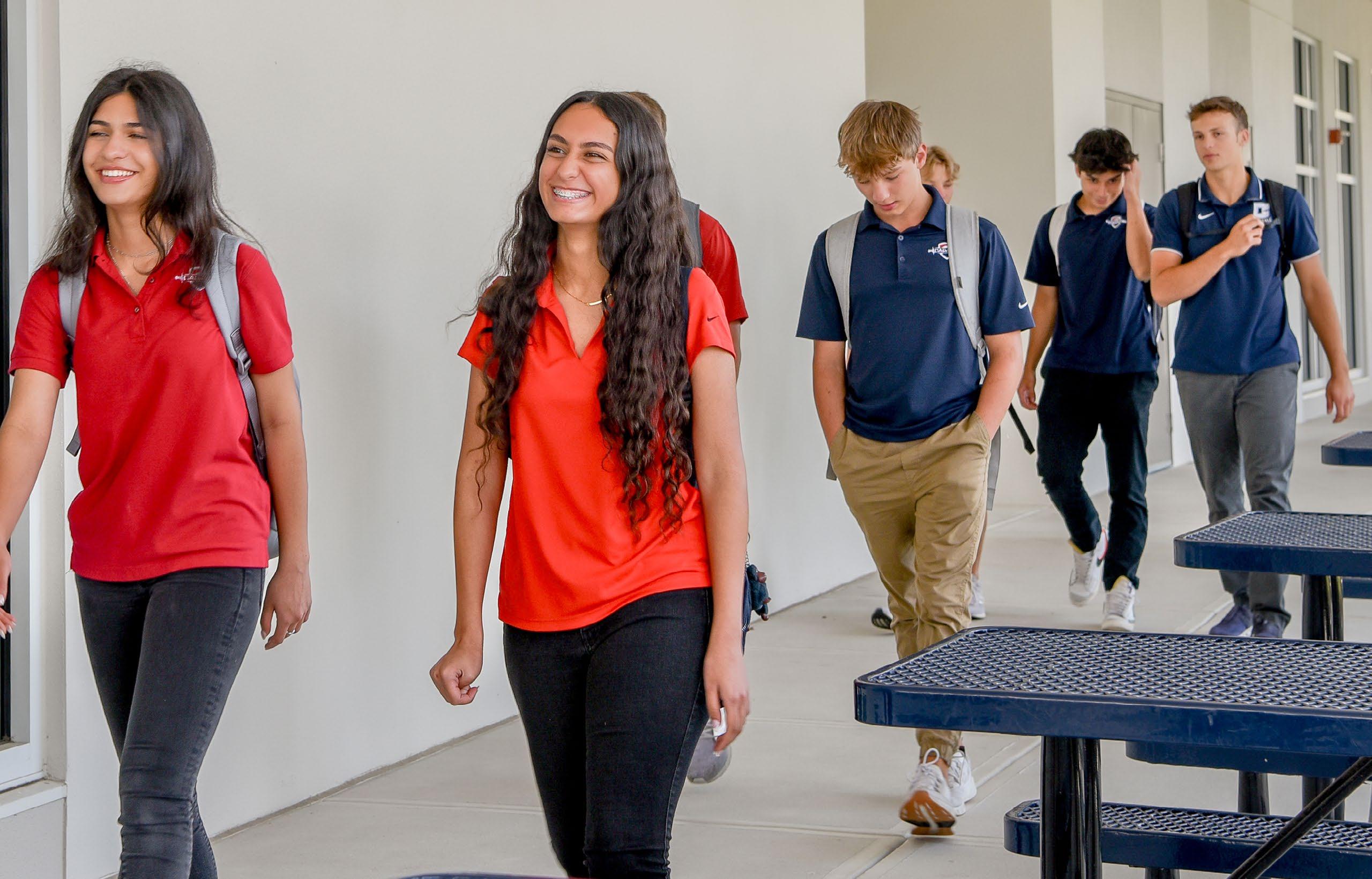 Athletic bags and equipment should be stored in designated areas during the day to keep hallways clear and safe. Backpacks are not permitted inside classrooms to help maintain an organized and focused learning space.