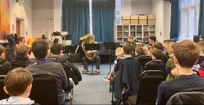 were all preparing for the upcoming Small Ensembles Concert. These boys took part in rehearsal-style workshops with members of the quintet. Each ensemble received specialist coaching, refining ensemble cohesion, musical detail and stagecraft. The day concluded with a showcase platform where our pupils performed with focus, confidence and maturity. This enriching event strengthened our