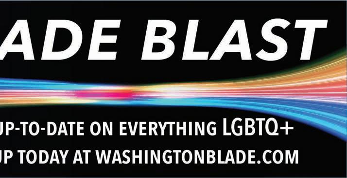 All material in the Washington Blade is protected by federal copyright law and may not be reproduced without the written consent of the Washington Blade. The sexual orientation of advertisers, photographers, writers and cartoonists published herein is neither inferred nor implied. The appearance of names or pictorial representation does not necessarily indicate the sexual orientation of that person or persons. Although the Washington Blade is supported by many fine advertisers, we cannot accept responsibility for claims made by advertisers. Unsolicited editorial material is accepted by the Washington Blade, but the paper cannot take responsibility for its return. The editors reserve the right to accept, reject or edit any submission. A single copy of the Washington Blade is available from authorized distribution points, to any individual within a 50-mile radius of Washington, D.C. Multiple copies are available from the Washington Blade office only. Call for rates. If you are unable to get to a convenient free distribution point, you may receive a 52-week mailed subscription for $195 per year or $5.00 per single issue. Checks or credit card orders can be sent to Phil Rockstroh at prockstroh@ washblade.com. Postmaster: Send address changes to the Washington Blade, PO BOX 53352 Washington, DC 20009. The Washington Blade is published weekly, on Friday, by Brown Naff Pitts Omnimedia, Inc. Rates for businesses/institutions are $450 per year. Periodical postage paid at Washington, D.C., and additional mailing offices. Editorial positions of the Washington Blade are expressed in editorials and in editors’ notes as determined by the paper’s editors. Other opinions are those of the writers and do not necessarily represent the opinion of the Washington Blade or its staff. To submit a letter or commentary: Letters should be fewer than 400 words; commentaries should be fewer than 750 words. Submissions may be edited for content and length, and must include a name, address and phone number for verification. Send submissions by e-mail to knaff@ washblade.com.