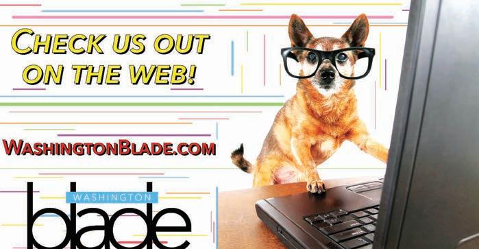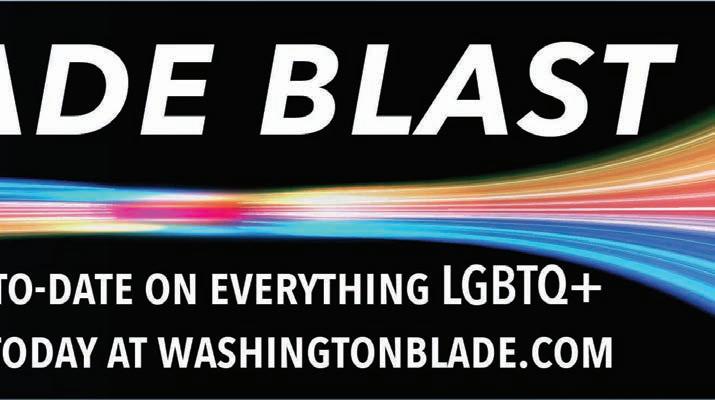 All material in the Washington Blade is protected by federal copyright law and may not be reproduced without the written consent of the Washington Blade. The sexual orientation of advertisers, photographers, writers and cartoonists published herein is neither inferred nor implied. The appearance of names or pictorial representation does not necessarily indicate the sexual orientation of that person or persons. Although the Washington Blade is supported by many fne advertisers, we cannot accept responsibility for claims made by advertisers. Unsolicited editorial material is accepted by the Washington Blade, but the paper cannot take responsibility for its return. The editors reserve the right to accept, reject or edit any submission. A single copy of the Washington Blade is available from authorized distribution points, to any individual within a 50-mile radius of Washington, D.C. Multiple copies are available from the Washington lade offce only. Call for rates. If you are unable to get to a convenient free distribution point, you may receive a 52-week mailed subscription for $195 per year or $5.00 per single issue. Checks or credit card orders can be sent to Phil Rockstroh at prockstroh@ washblade.com. Postmaster: Send address changes to the Washington Blade, PO BOX 53352 Washington, DC 20009. The Washington Blade is published weekly, on Friday, by Brown Naff Pitts Omnimedia, Inc. Rates for businesses/institutions are $450 per year. Periodical postage paid at Washington, D.C., and additional mailing offces. ditorial positions of the Washington Blade are expressed in editorials and in editors’ notes as determined by the paper’s editors. Other opinions are those of the writers and do not necessarily represent the opinion of the Washington Blade or its staff. To submit a letter or commentary: Letters should be fewer than 400 words; commentaries should be fewer than 750 words. Submissions may be edited for content and length, and must include a name, address and phone number for verifcation. Send submissions by e mail to knaff washblade.com.