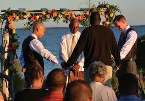The event was held at the Arlington, Va. home of Freddie Lutz, owner of the Arlington gay bar and restaurant Freddie’s Beach Bar, and Lutz’s husband, Johnny Cervantes.