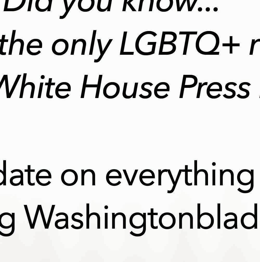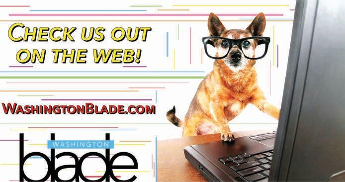 All material in the Washington Blade is protected by federal copyright law and may not be reproduced without the written consent of the Washington Blade. The sexual orientation of advertisers, photographers, writers and cartoonists published herein is neither inferred nor implied. The appearance of names or pictorial representation does not necessarily indicate the sexual orientation of that person or persons. Although the Washington Blade is s orte b an fine a ertisers e cannot acce t res onsibilit or claims made by advertisers. Unsolicited editorial material is accepted by the Washington Blade, but the paper cannot take responsibility for its return. The editors reserve the right to accept, reject or edit any submission. A single copy of the Washington Blade is available from authorized distribution points, to any individual within a 50-mile radius of Washington, D.C. Multiple co ies are a ailable ro t e as in ton Bla e o fice onl all or rates you are unable to get to a convenient free distribution point, you may receive a 52-week mailed subscription for $195 per year or $5.00 per single issue. Checks or credit card orders can be sent to Phil Rockstroh at prockstroh@ washblade.com. Postmaster: Send address changes to the Washington Blade, PO BOX 53352 Washington, DC 20009. The Washington Blade is published weekly, on Friday, by Brown Naff Pitts Omnimedia, Inc. Rates for businesses/institutions are $450 per year. Periodical postage paid at as in ton an a itional ailin o fices itorial ositions o the Washington Blade are expressed in editorials and in editors’ notes as determined by the paper’s editors. Other opinions are those of the writers and do not necessarily represent the opinion of the Washington Blade or its staff. To submit a letter or commentary: Letters should be fewer than 400 words; commentaries should be fewer than 750 words. Submissions may be edited for content and length, and must include a name, address an one n ber or erification en s b issions b e ail to kna washblade.com.