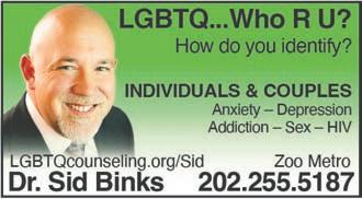People Individual/couple counseling with a volunteer peer counselor. GMCC, serving our community since 1973. 202-580-8661 gaymenscounseling.org No fees, donation requested.