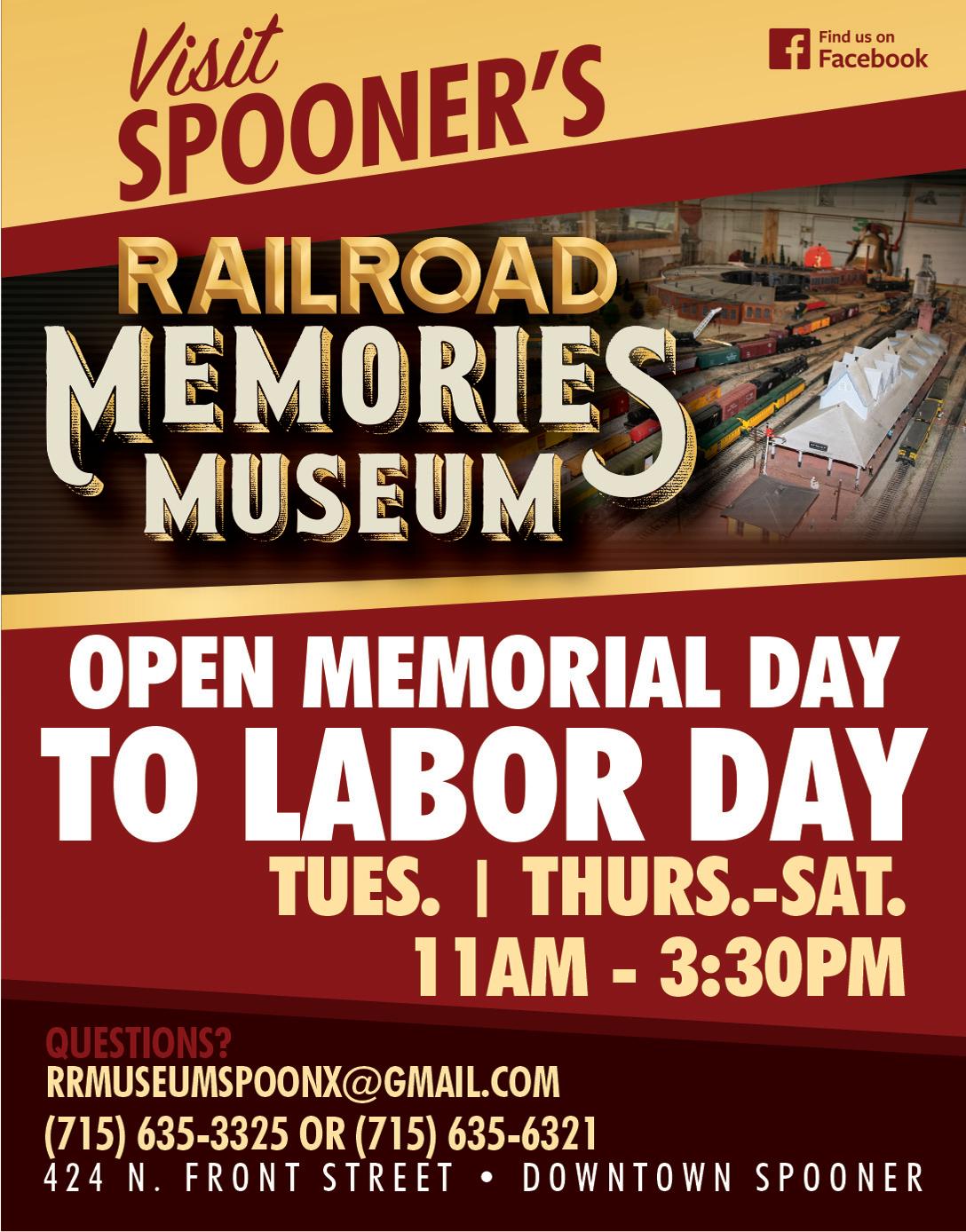 715.635.3325 | 424 N Front St. | Spooner spoonerrailroadmuseum.org