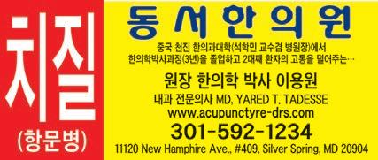 ๋กค, ์ฌ์ ๋, ์ ๊ฒฝํต ๋ฑ ์ง๋ฃ๊ณผ๋ชฉ ์ค์ฑ์ ํผ๋ถ๊ณผ ์ง๋ฃ ๊ณผ๋ชฉ โ ๋ชจ๋ ํผ๋ถ์งํ โ ์ฌ๋ง๊ท ์ โ ์ต์ง โ ์ฌ๋๋ฆ โ ์๋ฌ์ง โ ํผ๋ถ ํน ์ โ ํผ๋ถ ๋ฐํผ์ โ ๋ฌด์ข ์กฐ๊ฐ์ง๊ท ์ฆ โ ๋ชจ๋ฐ์งํ ํ๋ชจ์ฆ โ ์ํฑ ๋ฐํฑ ์งํ 703-914-8778 (์ ๋๋ฐ์ผ) 703-282-0522 7535 Little River Tnpk., #120-B Annandale, VA 22003 WWW.CNETCURITY.COM ๋ฏธ๊ตญ ํ์ธ ๋น์ง๋์ค ์ ๋ณดํต์ ๊ธฐ์ ์ ์์กด์ฌ! ํผ์ดํฉ์ค ๋ฉ๋ชจ๋ฆฌ์ผ ํํฌ 703-323- 5202 ๊ณต์๋ฌ์งยท์ฅ์์ฌ www.acupuncture-drs.com ๋์ํ์์ ๊ณ ํ์ ยท ์ํ์ฅ์ ยท ๋น๋จ๋ณ ๋ง์ฑํผ๋ก ์ํ์ฅ์ ยท ๋ถ๋ฉด์ฆ ๋ฐฐ๋จ์ฅ์ ยท ๊ตํต์ฌ๊ณ ยท ๋ชจ๋ ํต์ฆ ์น์งยทํผ๋ถ๋ณยท์๋ฌ์ง (ํญ๋ฌธ๋ณ) (์๋ฐ๋ฌด์ข) (์ฝง๋ฌผ์ ์ฒด๊ธฐ) 301-592-1234 703.942.5257 703.942.8858 ์๋ดํ์์ 3๋ ๋ฅผ ์ด์ด๊ฐ๋ ๋ํ๋ฏผ๊ตญ ์ ํต ํ์์ JUB ๋ฌธํ์ผํฐ ํ๊ตญ๋ฌด์ฉ โข ๋ํ ์ฌ๋ฌผ๋์ด โข ๋ฏธ์ 703-577-3578 ๋ฏธ์ ๋ฌธ์: 703-678-6639 ๋ด์ฌ์ฆ ๋ฐ๊ธ โข ์ฅํ๊ธ ์ง๊ธ ๋ํต๋ น ๋ด์ฌ์ ์ธ์ฆ๊ธฐ๊ด 703-712-8548 ๊ณฝ๋์ ๋ฒ๋ฅ ์ฌ๋ฌด์ 20๋