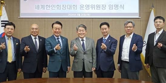 재외동포청(청장 김경협)은 오 는 9월 27∼30일 인천 송도 컨벤 시아에서 재외동포가 주도하는 ‘ 세계한인회장대회’가 열린다고 26 일 밝혔다. 동포청은 이날 인천 송도 본청 에서 고상구 세계한인총연합회 회장을 임기 2년의 세계한인회장 대회 운영위원장으로 임명했다. 고 회장은 지난 9일 세계한인회 장대회 운영위원회에서 첫 민간 운영위원장으로 선출됐다. 임명식에는 김경협 동포청장, 김민철 동포청 차장, 고상구 운 영위원장, 서정일 미주한인회총 연합회 총회장, 김기영 아시아한 인회총연합 회장, 김현태 재일한 국인총연합회 회장 등이 참석했 다. 고상구 신임 운영위원장은 “그