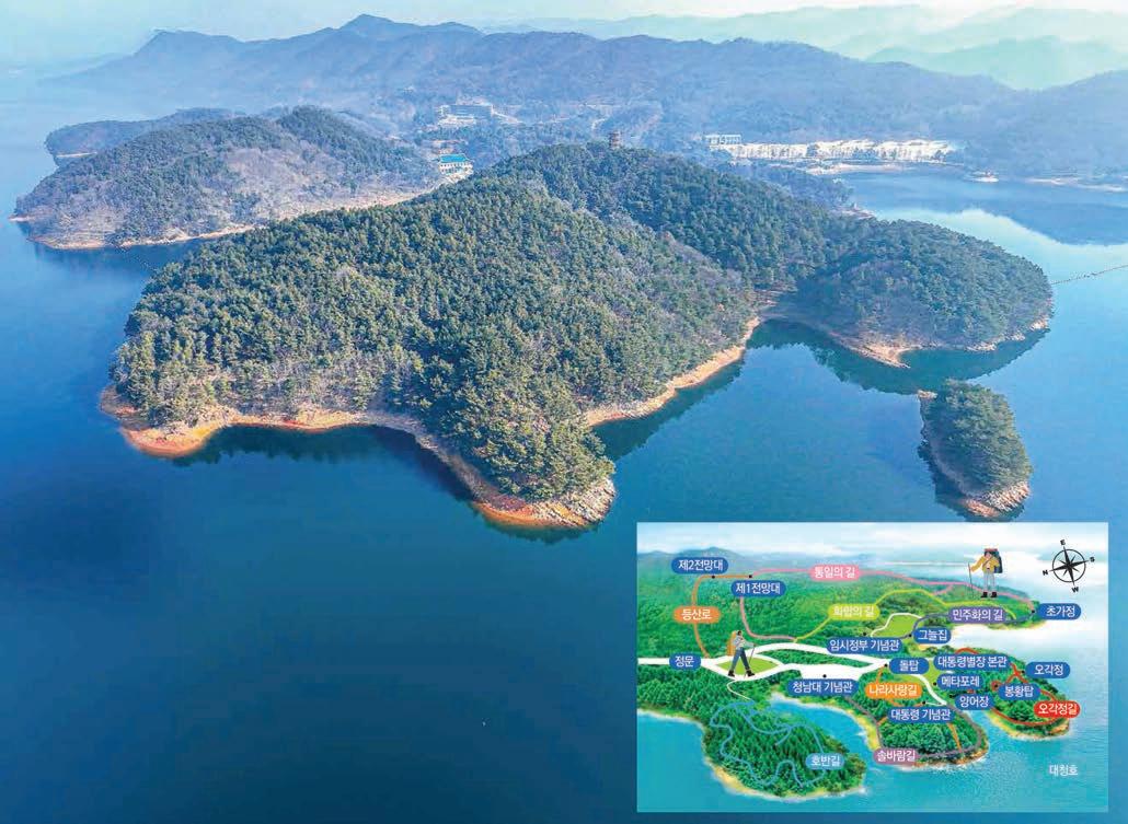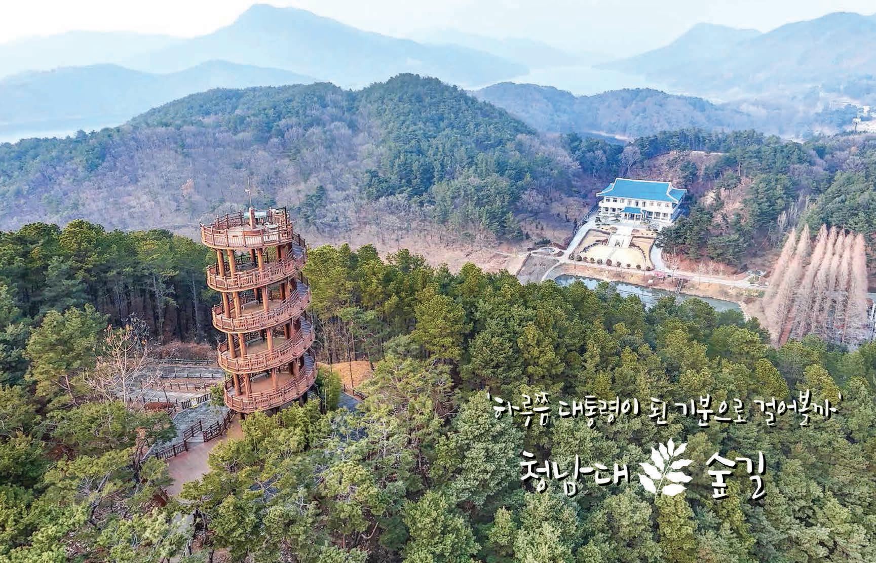 ์ฒญ๋จ๋์๋ ๋์ฒญํธ๋ฅผ ๋ฐ๋ผ๋ณด๋ฉฐ ๊ฑธ์ ์ ์๋ ์ฒ๊ธธ์ด 8โผ9๊ฐ ์ฝ์ค์ ์ด๋ฅธ๋ค. ์ฒ๊ธธ ์ ๊ธธ์ด๋ ๋ชจ๋ ํฉํด ์ฝ 14ใ. ์ค๊ฐ์ ๊ธธ, ์๋ฐ๋ ๊ธธ, ๋ฏผ์ฃผํ ๊ธธ, ํต์ผ์ ๊ธธ, ํํฉ์ ๊ธธ, ๋๋ผ์ฌ๋ ๊ธธ, ํธ๋ฐ ๊ธธ, ๋ฑ์ฐ ๋ก, ๋ดํฉํ ๋ฑ์ ์ด๋ฆ์ด ๋ถ์ฌ์ ธ ์๋ค. ๊ฒฝ๋น ๋ถ๋ ๋ฐ์นธ 1์ง์ง๋ฅผ ์ ๋ง๋๋ก ์กฐ์ฑ ํ ๋ดํฉํ์ โ๋ดํฉ์ ์ฒโ ์์ ์๋ค. ๋์ด 22๏ฝ์ ๋์ ํ ํ์ผ๋ก, ์ฝ 200๏ฝ๋ฅผ ์ฌ๋ผ๊ฐ์ผ ํ๋ค. ๊ผญ๋๊ธฐ์ ์ด๋ฅด๋ฉด ์ฒญ๋จ๋ ์ผ ๋๊ฐ ํ๋์ ์กํ๋ค. ํ๋ฐฉ๊ฐ๋ค์ด ๊ฐ์ฅ ๋ง์ด ์ฐพ๋ ์ฒ๊ธธ์ ๋ํต ๋ น ๋ณ์ฅ ๋ณธ๊ด์ ๋ผ๊ณ ์๋ โ์ค๊ฐ์ ๊ธธโ์ด๋ค. ์ ๋ฌธ์์ ์ฒญ๋จ๋ ๊ธฐ๋ ๊ด, ๋ํ, ๋ฉํํฌ ๋ , ์์ด์ฅ์ ์ง๋๋ฉด ์์๋๋ ๋ฌด์ฅ์ ๋ ๋ ๊ธธ์ด ์ค๊ฐ์ ๊ธธ์ด๋ค.