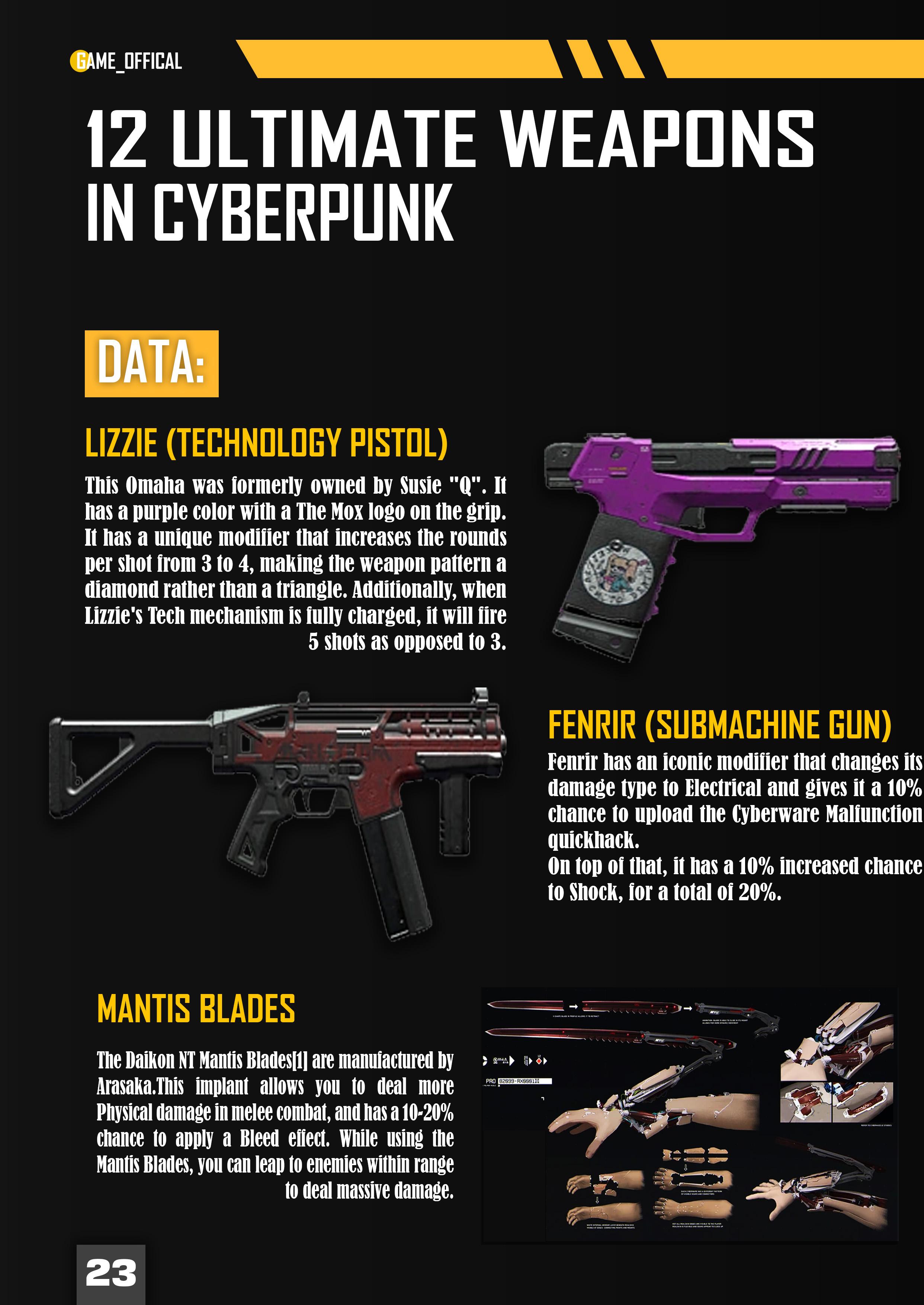 The history of weapons in the cyberpunk universe is deeply intertwined with technological advancements, corporate warfare, and societal collapse. As the world becomes increasingly reliant on cybernetics, AI, and mega-corporations, the evolution of weaponry takes a dark and innovative turn. Traditional firearms give way to more advanced, specialized tools designed for both offense and defense in a world filled with hackers, mercenaries, and powerful corporations. These weapons are not just tools of war but symbols of power and control in a dystopian society where the line between man and machine is often blurred. From energy-based firearms to powerful cybernetic implants, the weapons of cyberpunk are designed to meet the needs of a rapidly changing, dangerous world.