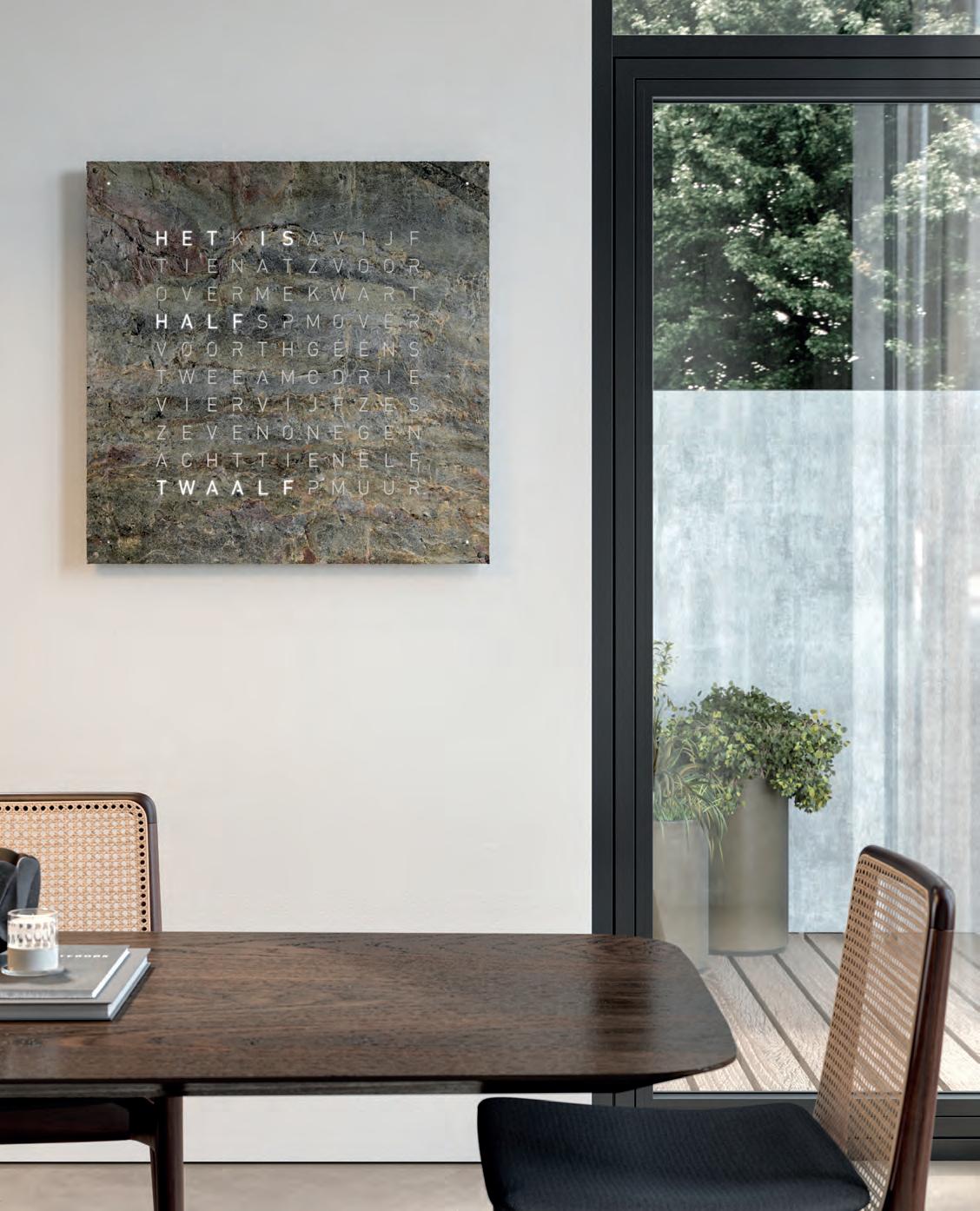 QLOCKTWO is een prachtige samensmelting van vakmanschap, kunst en een uurwerk. Bekijk de tijd in een typografische weergave terwijl u een uniek kunstwerk bewondert. De collectie is verkrijgbaar in verschillende maten, kleuren en materialen en is bekroond met talrijke designprijzen. Made in Germany. www.qlocktwo.com