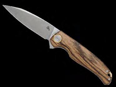 Het Italiaanse familiebedrijf Fox omschrijft de stijl van dit mes zelf als ‘techno-gentleman’. Ofwel een zakmes dat een stijlvolle klassieke uitstraling combineert met hedendaagse techniek. Het lemmet is gemaakt van satijn gepolijst D2, voor een moderne look en een luxe glans. Deze staalsoort staat bekend om zijn taaiheid, scherptebehoud en duurzaamheid en is daarmee een uitstekende keuze voor dagelijks gebruik. Het lemmet is uitgerust met een flipper zodat het mes snel éénhandig geopend kan worden, waarna de linerlock het lemmet voor de veiligheid in geopende stand houdt. Het ergonomische heft is gemaakt van geolied Zebrawood en zal tijdens zijn leven een fraai patina ontwikkelen. De naam van het stukje gereedschap luidt Argus, vernoemd naar de altijd waakzame reus uit de Griekse mythologie. Kost € 74. www.foxknives.nl