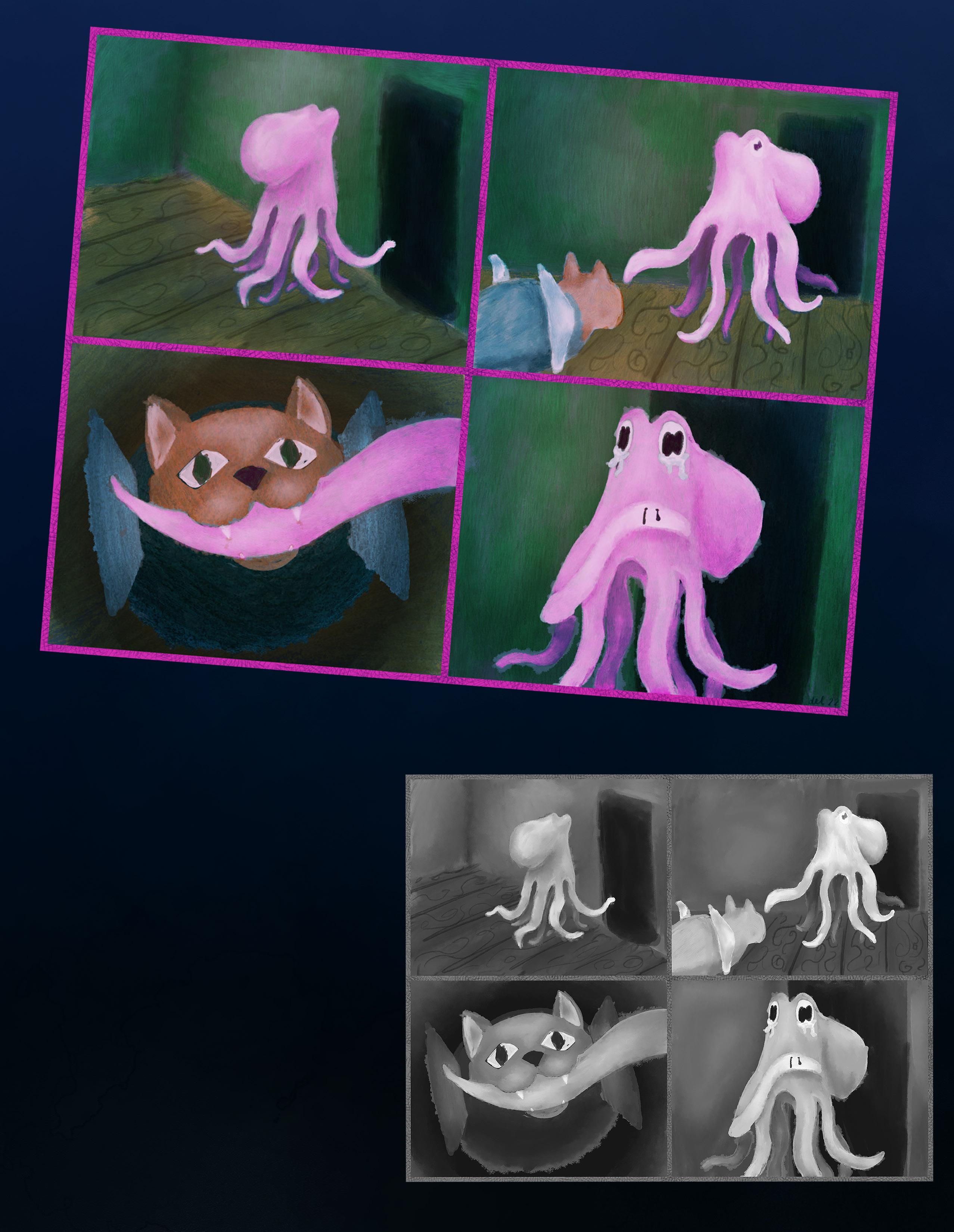 In the lower areas of the ocean, biolumenescence is an ever-present part of life. Predators use it to lure food to them, animals use it in mating rituals, prey will use it to distract predators to escape. In the absence of any sunlight, animals create their own and use it as a tool. It is at these depths that we begin to see more non-fish creatures than we do fish; aquatic animals like sharks and cephalopods are well-adapted for the bathypelagic environment.